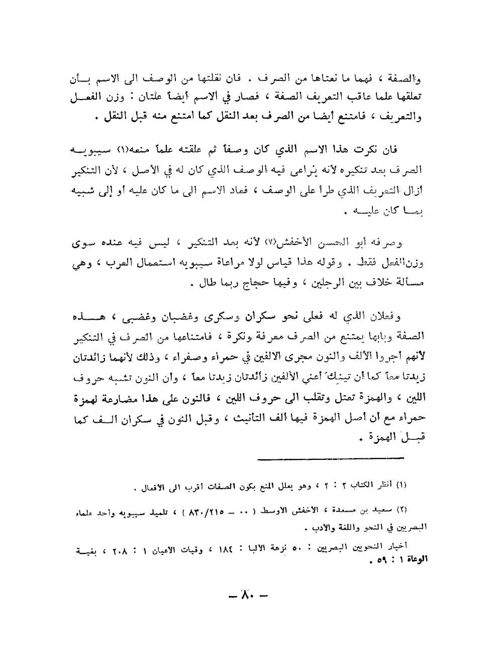 (¬1) أنظر الكتاب 2: 2، وهو يعلل المنع بكون الصفات أقرب إلى الأفعال.