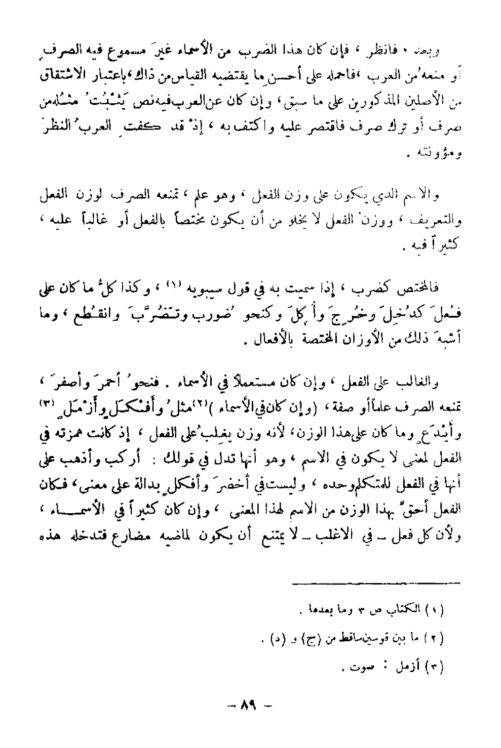 وبعد، فانظر، فإن كان هذا الضرب من الأسماء غير مسموع فيه الصرف أو منعه من العرب، فاحمله على أحسن ما يقتضيه القياس من ذاك، باعتبار الاشتقاق من الأصلين المذكورين على ما سبق، وإن كان عن العرب فيه نص يثبت مثله من صرف أو ترك صرف فاقتصر عليه واكتف به، إذ قد كفت العرب النظر ومؤونته.