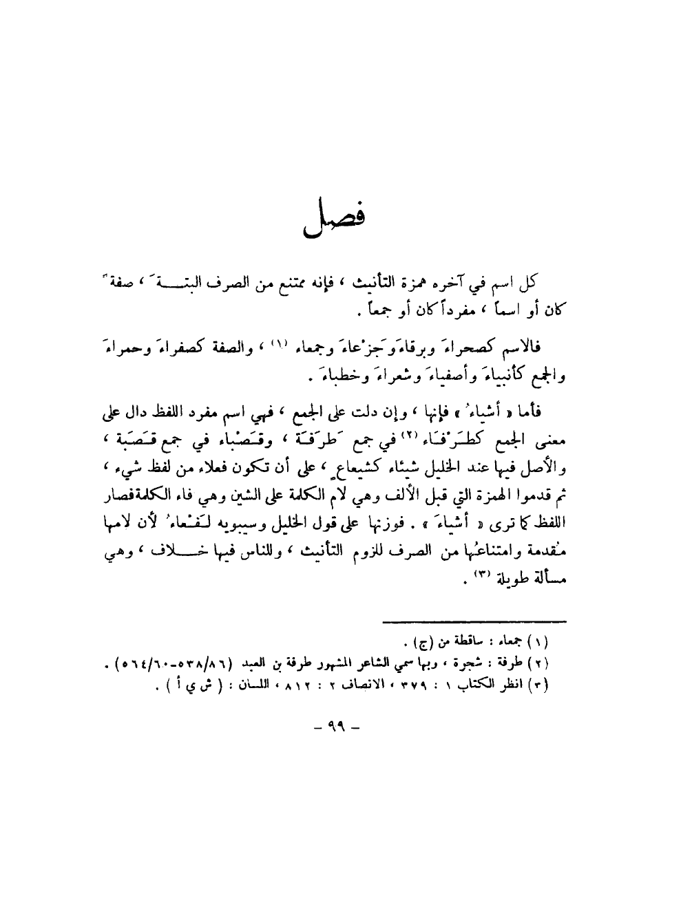 (¬3) انظر الكتاب 1: 379، الانصاف 2: 812، اللسان: (ش ي أ).