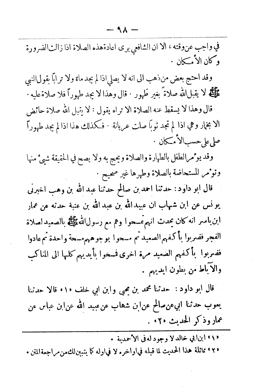 قال أبو داود: حدثنا محمد بن يحيى وابن أبي خلف قالا: حَدَّثنا يعقوب حدثنا أبي عن صالح عن ابن شهاب عن عبيد الله عن ابن عباس عن عمار وذكر الحديث.