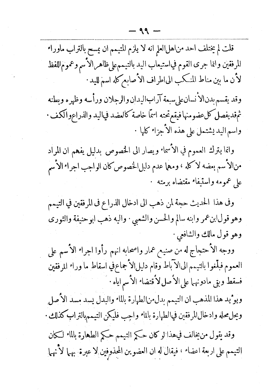 قلت: لم يختلف أحد من أهل العلم أنه لا يلزم المتيمم أن يمسح بالتراب ما وراء المرفقين وإنما جرى القوم في استيعاب اليد بالتيمم على ظاهر الاسم وعموم اللفظ لأن ما بين مناط المنكب إلى أطراف الأصابع كله اسم لليد.