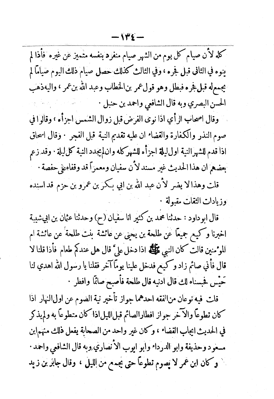 وقال أصحاب الرأي إذا نوى الفرض قبل زوال الشمس أجرأه، وقالوا في صوم النذر والكفاره والقضاء إن عليه تقديم النية قبل الفجر. وقال إسحاق إذا قدم للشهر النية أول ليلة أجزأه للشهر كله وإن لم يجدد النية كل ليلة. وقد زعم بعضهم أن هذا الحديث غير مسند لأن سفيان ومعمرا قد وقفاه عنى حفصة.