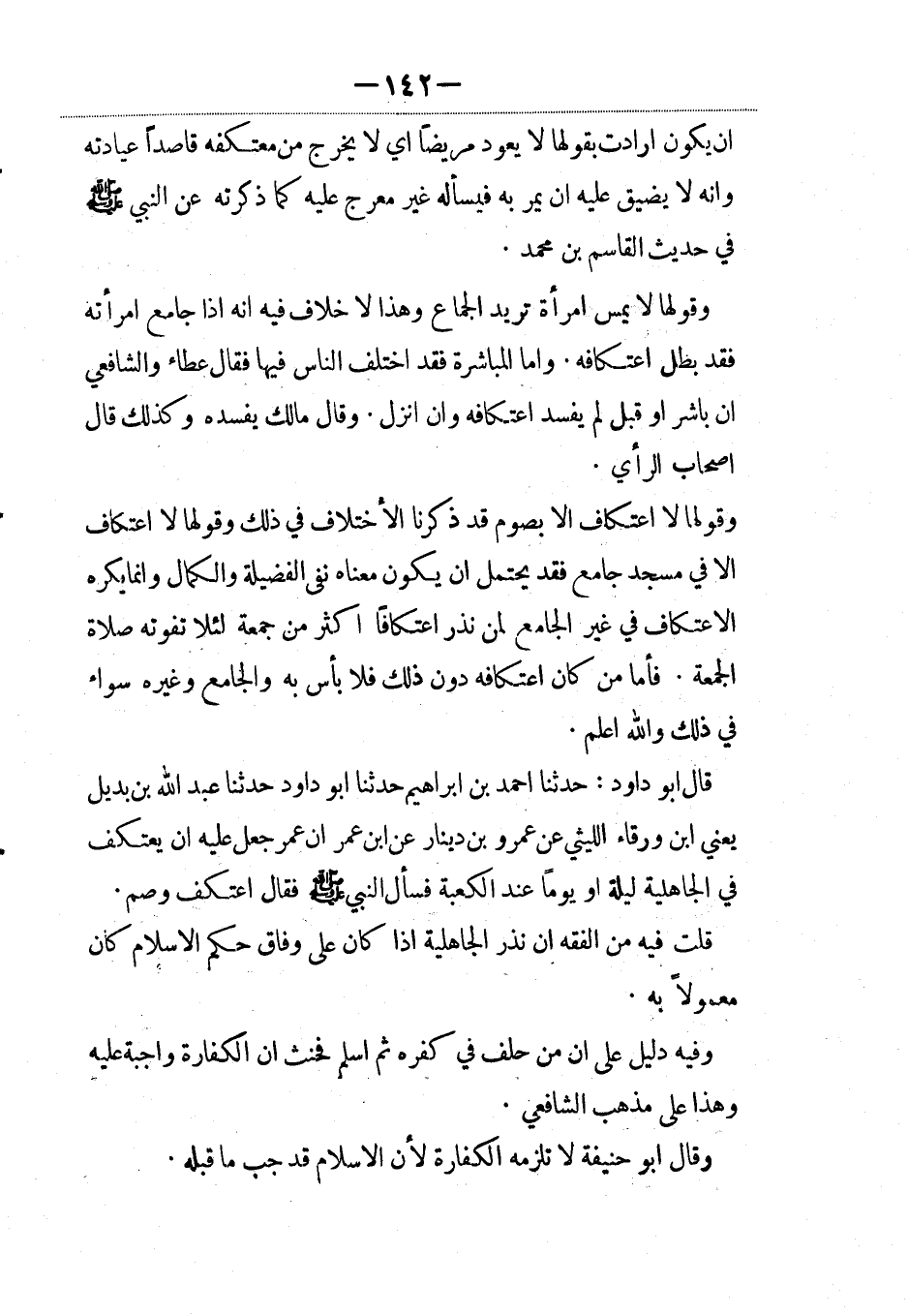 قال أبو داود: حدثنا أحمد بن إبراهيم حدثنا أبو داود حدثنا عبد الله بن بديل يعنى ابن ورقاء الليثي عن عمرو بن دينار عن ابن عمر أن عمر جعل عليه أن يعتكف في الجاهلية ليلة أو يوماً عند الكعبة فسأل النبي صلى الله عليه وسلم فقال اعتكف وصم.