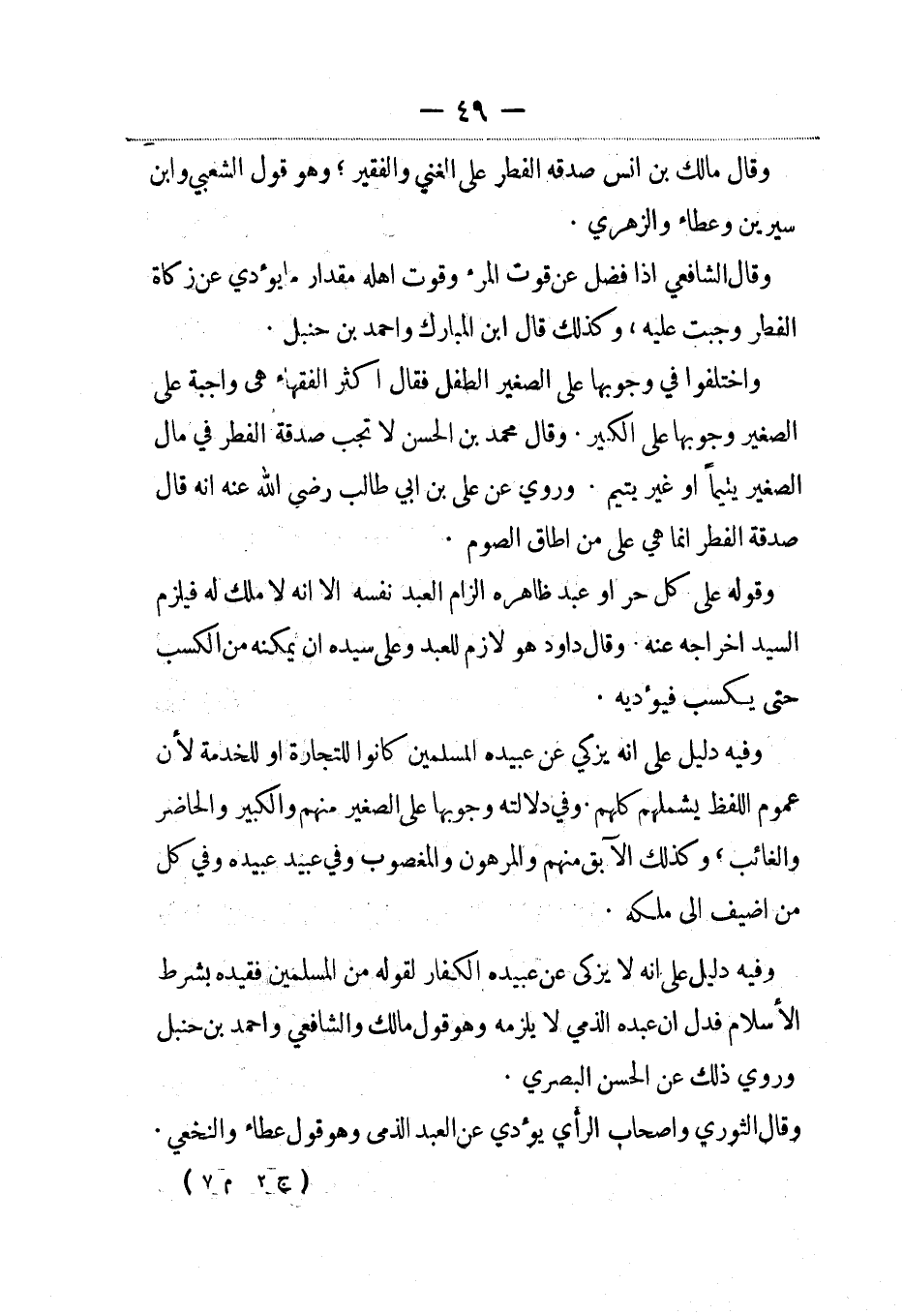 وفيه دليل على أنه لا يزكي عن عبيده الكفار لقول من المسلمين فقيده بشرط الإسلام فدل أن عبده الذمي لا يلزمه وهو قول مالك والشافعي وأحمد بن حنبل وروي ذلك عن الحسن البصري.