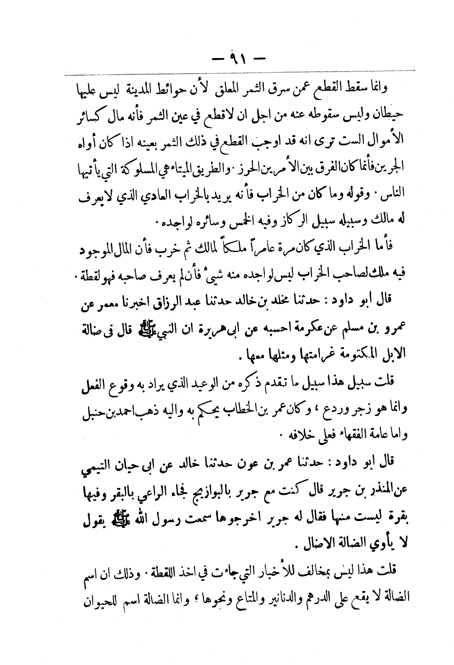 قال أبو داود: حدثنا عمر بن عون حدثنا خالد، عَن أبي حيان التيمي عن المنذر بن جرير قال كنت مع جرير بالبوازيج فجاء الراعي بالبقر وفيها بقرة ليست منها فقال له جرير أخرجوها سمعت رسول الله صلى الله عليه وسلم يقول لا يأوي الضالة إلاّ ضال.