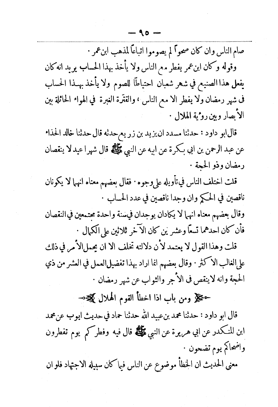 قال أبو داود: حدثنا محمد بن عبيد الله حدثنا حماد في حديث أيوب عن محمد بن المنكدر، عَن أبي هريرة عن النبي صلى الله عليه وسلم قال فيه وفطركم يوم تفطرون وأضحاكم يوم تضحون.