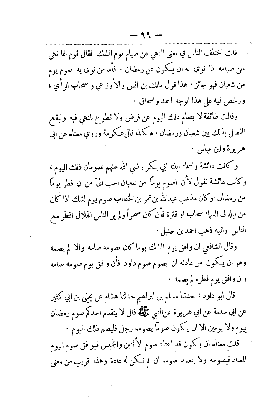 قلت اختلف الناس في معنى النهي عن صيام يوم الشك فقال قوم إنما نهى عن صيامه إذا نوى به أن يكون عن رمضان. فأما من نوى به صوم يوم من شعبان فهو جائز. هذا قول مالك بن أنس والأوزاعي وأصحاب الرأي، ورخص فيه على هذا الوجه أحمد وإسحاق.