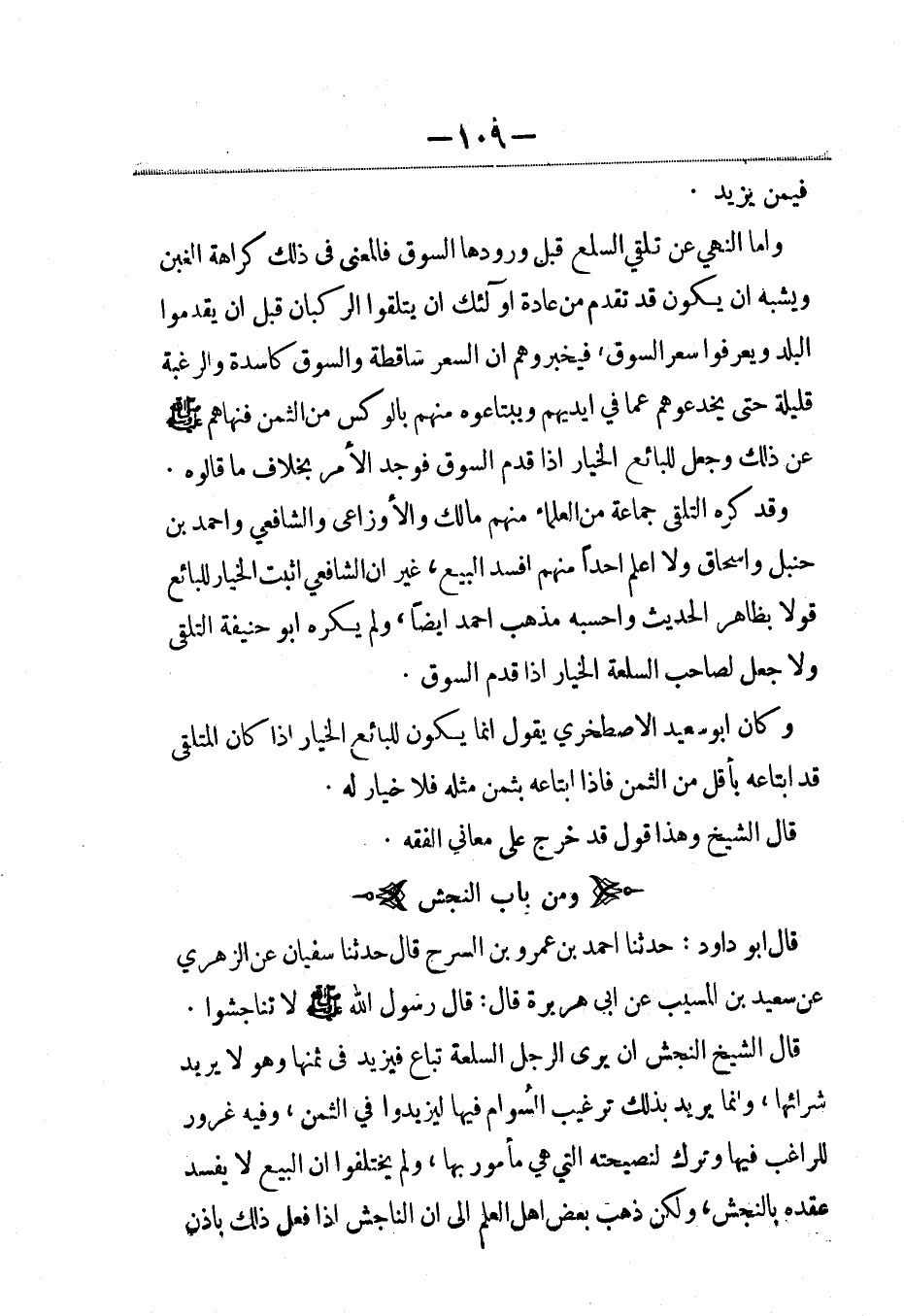 قال أبو داود: حدثنا أحمد بن عمرو بن السرح، قال: حَدَّثنا سفيان عن الزهري عن سعيد بن المسيب، عَن أبي هريرة قال: قال رسول الله صلى الله عليه وسلم: لا تناجشوا.