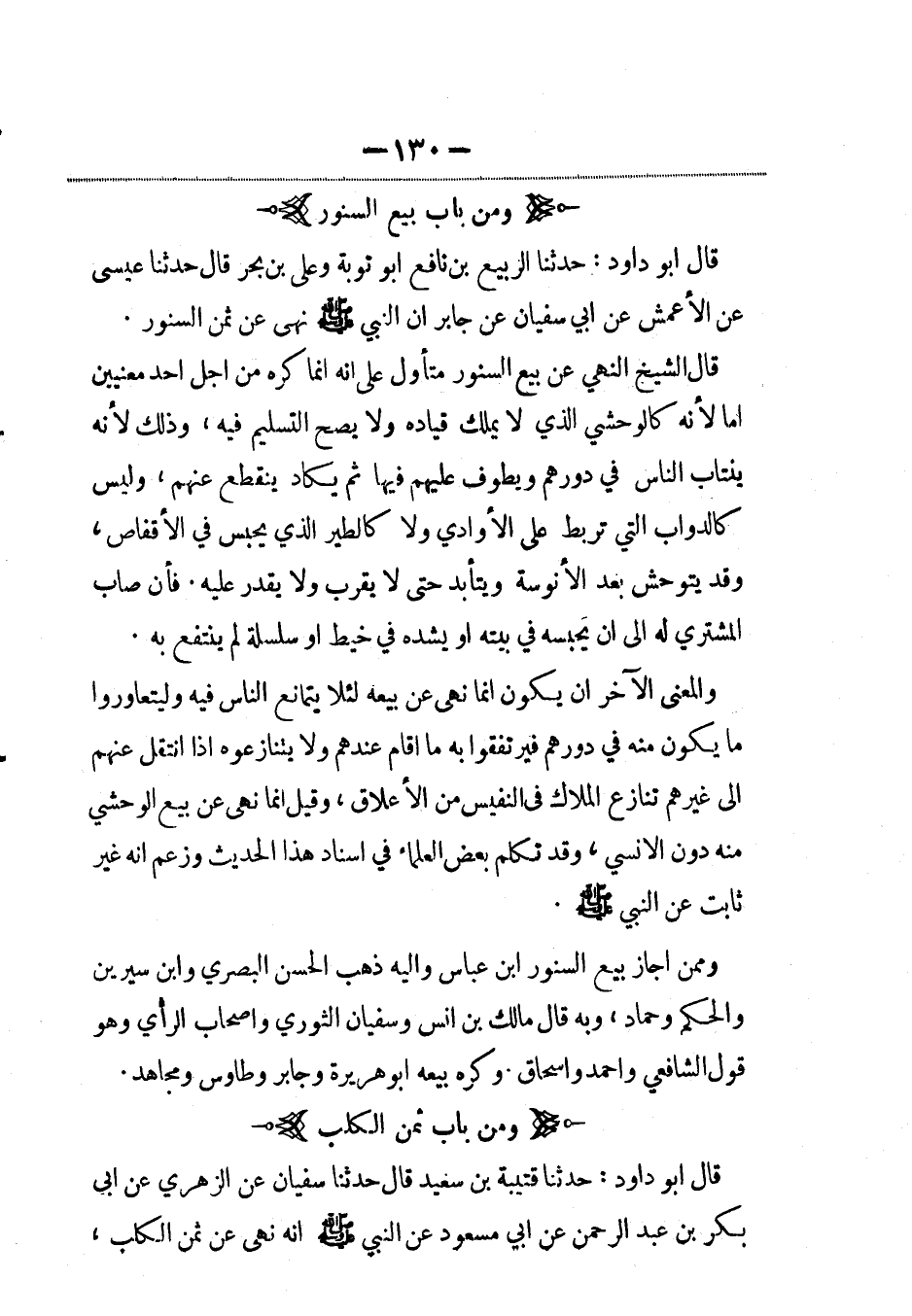 قال أبو داود: جدثنا قتيبة بن سعيد، قال: حَدَّثنا سفيان عن الزهري، عَن أبي بكر بن عبد الرحمن، عَن أبي مسعود عن النبي صلى الله عليه وسلم أنه نهى عن ثمن الكلب،