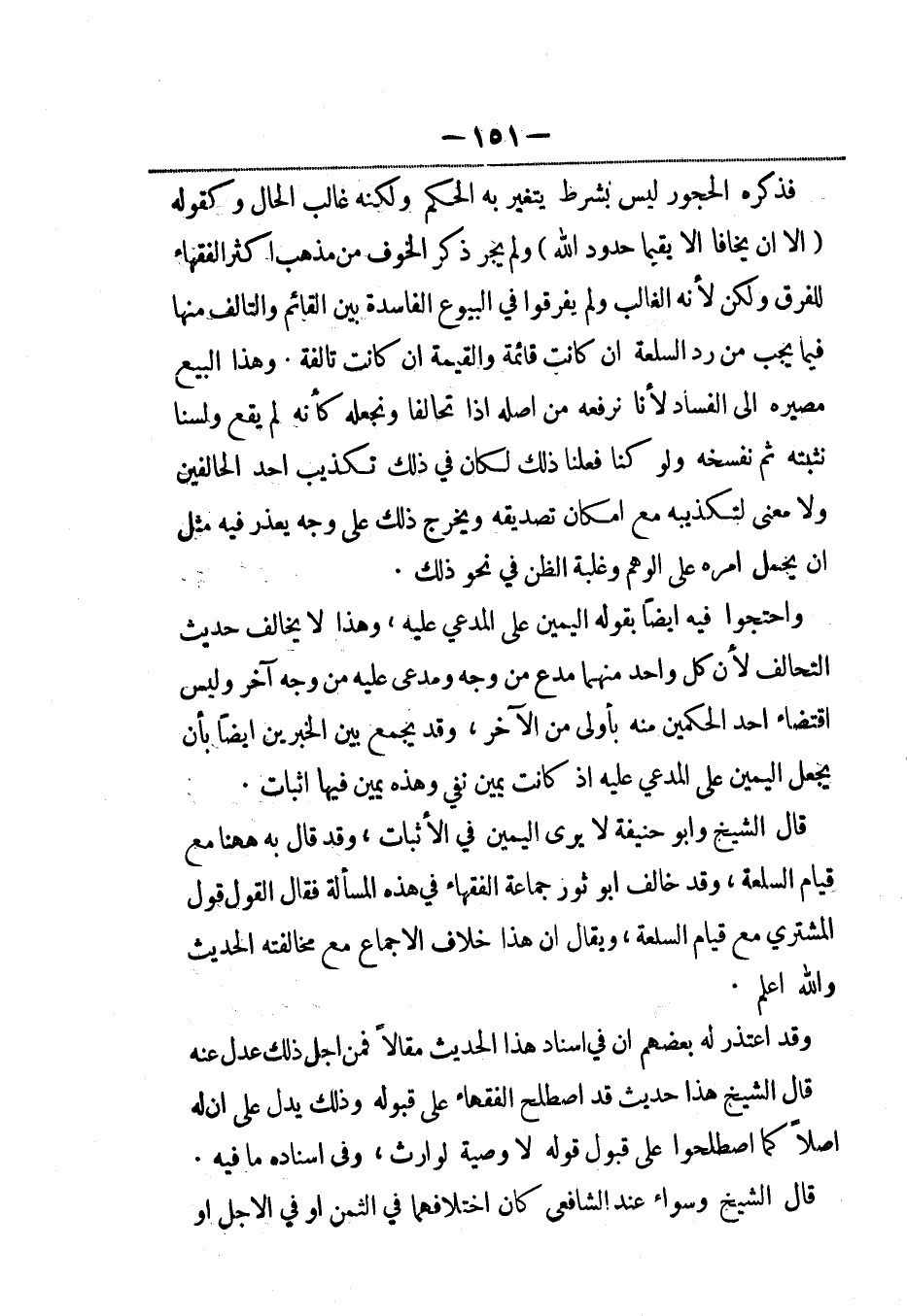 فذكره الحجور ليس بشرط يتغير به الحكم ولكنه غالب الحال وكقوله {إلاّ أن يخافا ألا يقيما حدود الله} [البقرة: 229] ولم يجز ذكر الخوف من مذهب أكثر الفقهاء للفرق ولكن لأنه الغالب ولم يفرقوا في البيوع الفاسدة بين القائم والتالف منها فيما يجب من رد السلعة إن كانت قائمة والقيمة إن كانت تالفة. وهذا البيع مصيره إلى الفساد لأنا نرفعه من أصله إذا تحالفا ونجعله كأنه لم يقع ولسنا نثبته ثم نفسخه ولوكنا فعلنا ذلك لكان في ذلك تكذيب أحد الحالفين ولا معنى لتكذيبه مع إمكان تصديقه ويخرج ذلك على وجه يعذر فيه مثل أن يحمل أمره على الوهم وغلبة الظن في نحو ذلك.