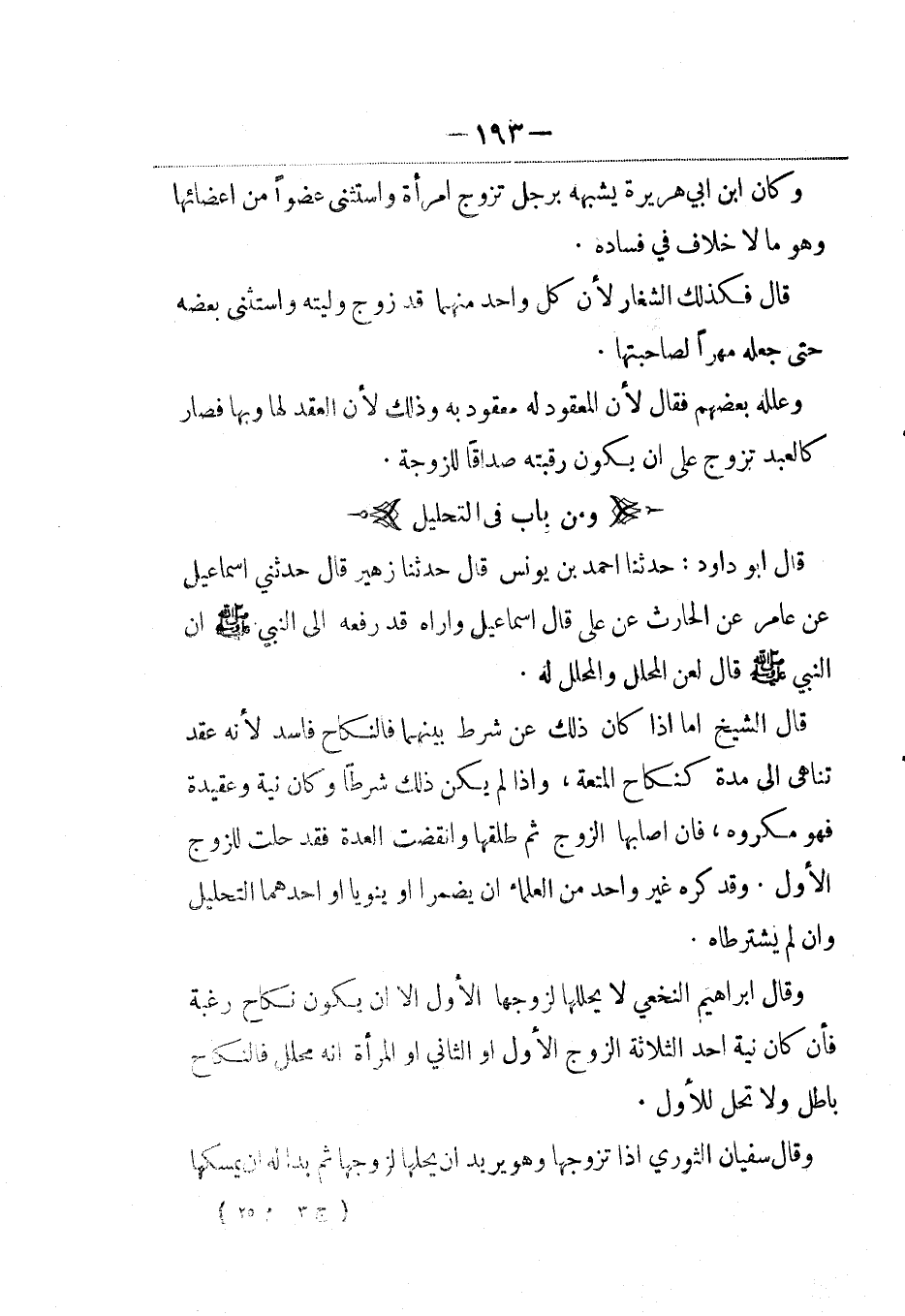 قال أبو داود: حدثنا أحمد بن يونس، قال: حَدَّثنا زهير قال حدثني إسماعيل عن عامر عن الحارث عن علي قال إسماعيل وأراه قد رفعه إلى النبي صلى الله عليه وسلم أن النبي صلى الله عليه وسلم قال: لعن المحلل والمحلل له.