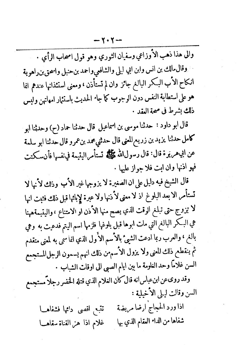 قال أبو داود: حدثنا موسى بن إسماعيل، قال: حَدَّثنا حماد (ح) وحدثنا أبو كامل حدثنا يزيد بن زريع المعنى قال حدثني محمد بن عمرو، قال: حَدَّثنا أبو سلمة، عَن أبي هريرة قال: قال رسول الله صلى الله عليه وسلم: تستأمر اليتيمة في نفسها فإن سكتت فهو إذنها وإن أبت فلا جواز عليها.