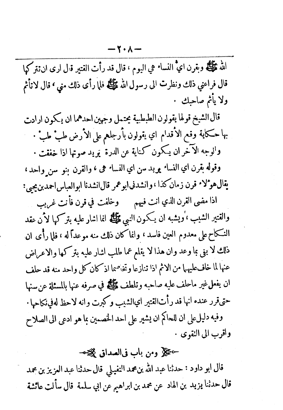 قال أبو داود: حدثنا عبد الله بن محمد النفيلي، قال: حَدَّثنا عبد العزيز بن محمد، قال: حَدَّثنا يزيد بن الهاد عن محمد بن إبراهيم، عَن أبي سلمة قال سألت عائشة