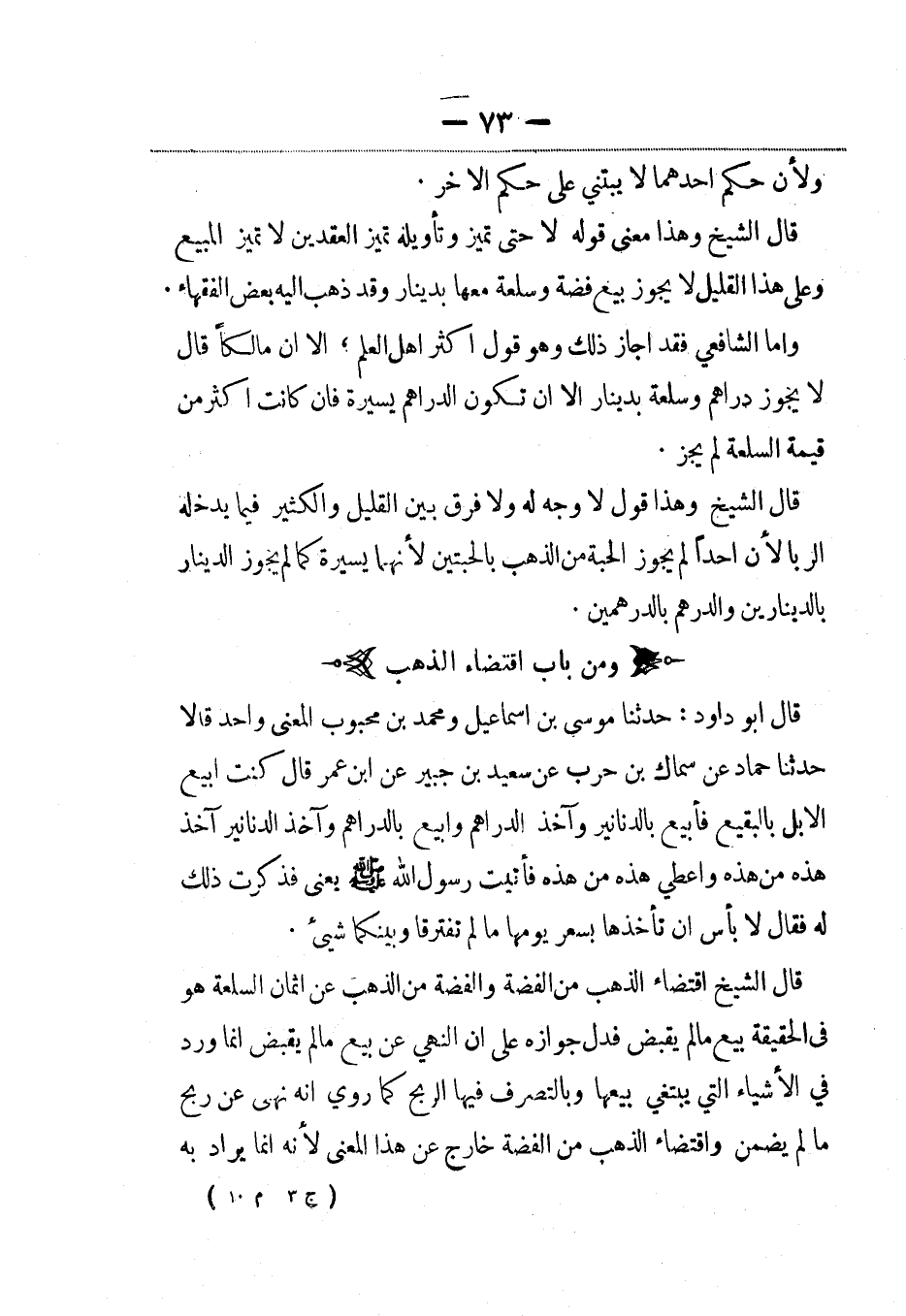 قال أبو داود: حدثنا موسى بن إسماعيل ومحمد بن محبوب المعنى واحد قالا: حَدَّثنا حماد عن سماك بن حرب عن سعيد بن جبير عن ابن عمر قال كنت أبيع الإبل بالبقيع فأبيع بالدنانير وآخذ الدراهم وأبيع بالدراهم وآخذ الدنانير آخذ هذه من هذه وأعطي هذه من هذه فأتيت رسول الله صلى الله عليه وسلم، يَعني فذكرت له فقال لا بأس أن تأخذها بسعر يومها ما لم تفترقا وبينكما شيء.