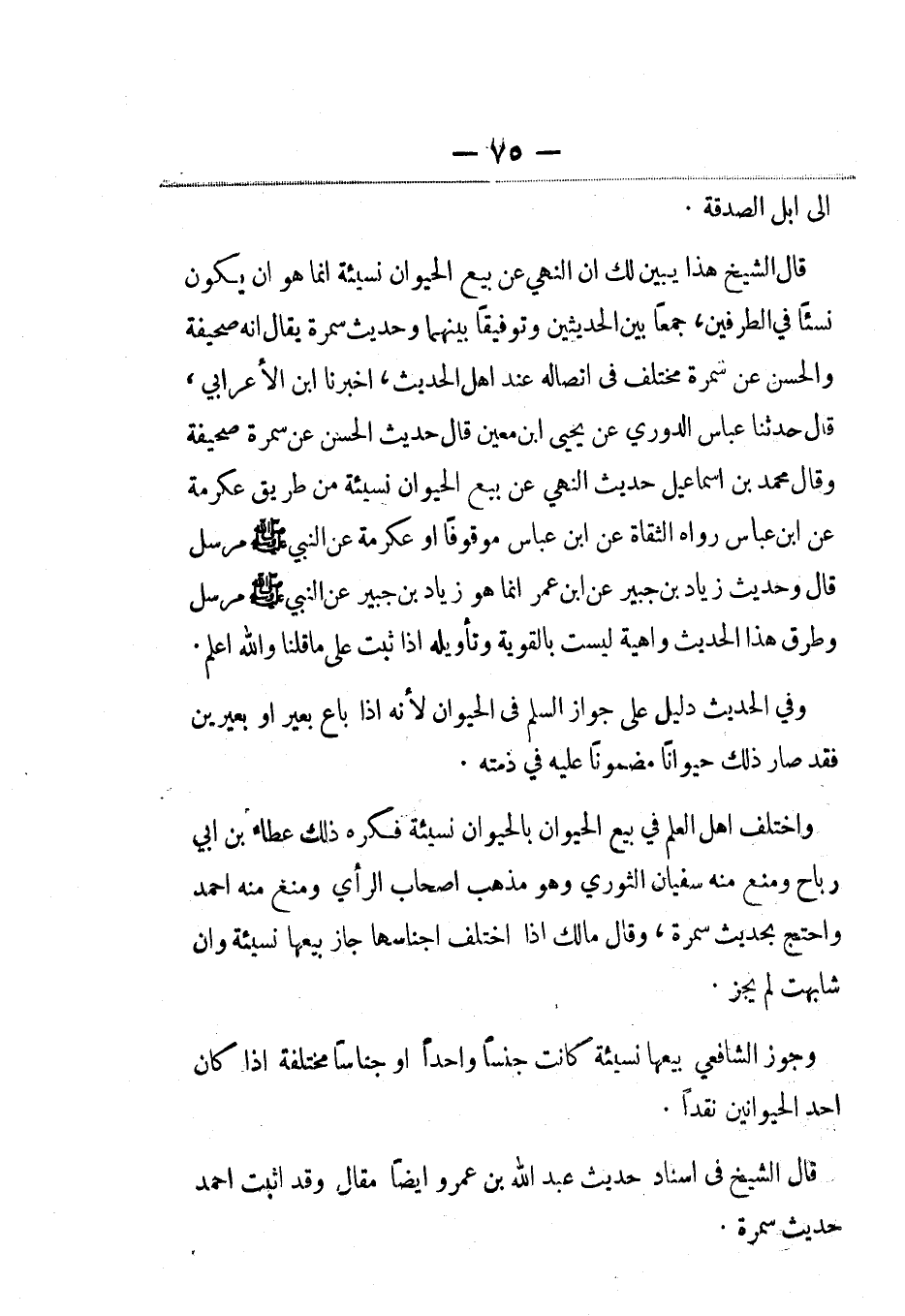 قال الشيخ هذا يبين لك أن النهي عن بيع الحيوان نسيئة إنما هو أن يكون نسئاً في الطرفين، جمعاً بين الحديثين وتوفيقاً بينهما وحديث سمرة يقال أنه صحيفة والحسن عن سمرة مختلف في اتصاله عند أهل الحديث، أخبرنا ابن الأعرابي،، قال: حَدَّثنا عباس الدوري عن يحيى بن معين قال حديث الحسن عن سمرة صحيفة وقال محمد بن إسماعيل حديث النهي عن بيع الحيوان نسيئة من طريق عكرمة عن ابن عباس رواه الثقاة عن ابن عباس موقوفا أو عكرمة عن النبي صلى الله عليه وسلم مرسل قال وحديث زياد بن جبير عن ابن عمر إنما هو زياد بن جبير عن النبي صلى الله عليه وسلم مرسل وطرق هذا الحديث واهية ليست بالقوية وتأويله إذا ثبت على ما قلنا والله أعلم.