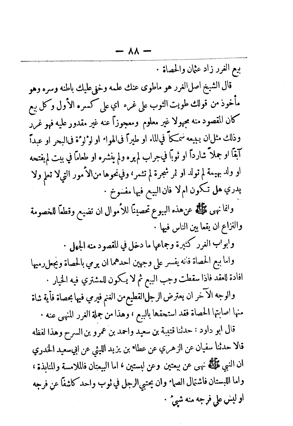 بيع الغرر زاد عثمان والحصاة.