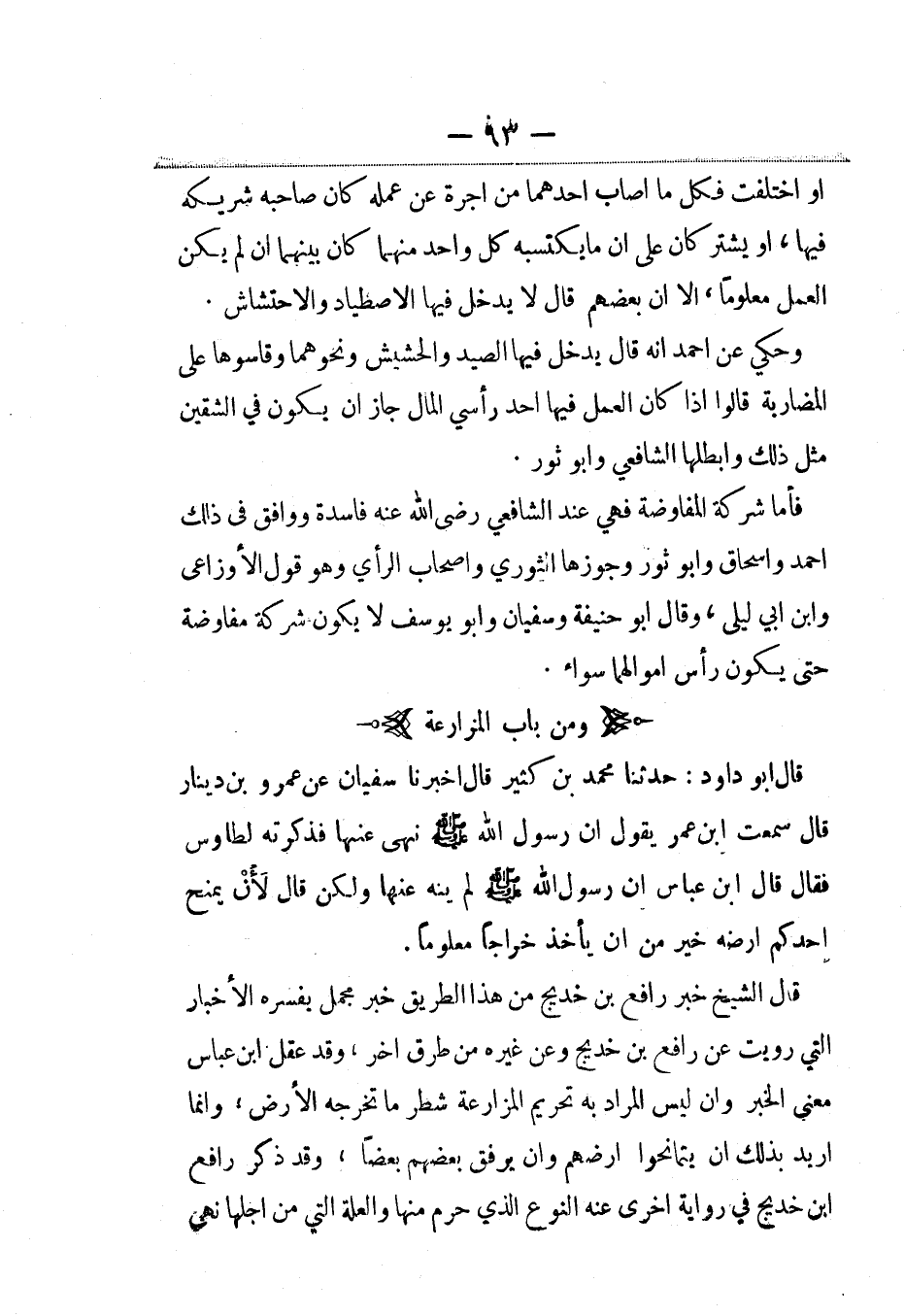 قال الشيخ خبر رافع بن خديج من هذا الطريق خبر مجمل يفسره الأخبار التي رويت عن رافع بن خديج وعن غيره من طرق أخر، وقد عقل ابن عباس معنى الخبر وأن ليس المراد به تحريم المزارعة شطر ما تخرجه الأرض، وإنما أريد بذلك أن يتمانحوا أرضهم وأن يرفق بعضهم بعضا، وقد ذكر رافع بن خديج في رواية أخرى عنه النوع الذي حرم منها والعلة التي من أجلها نهى