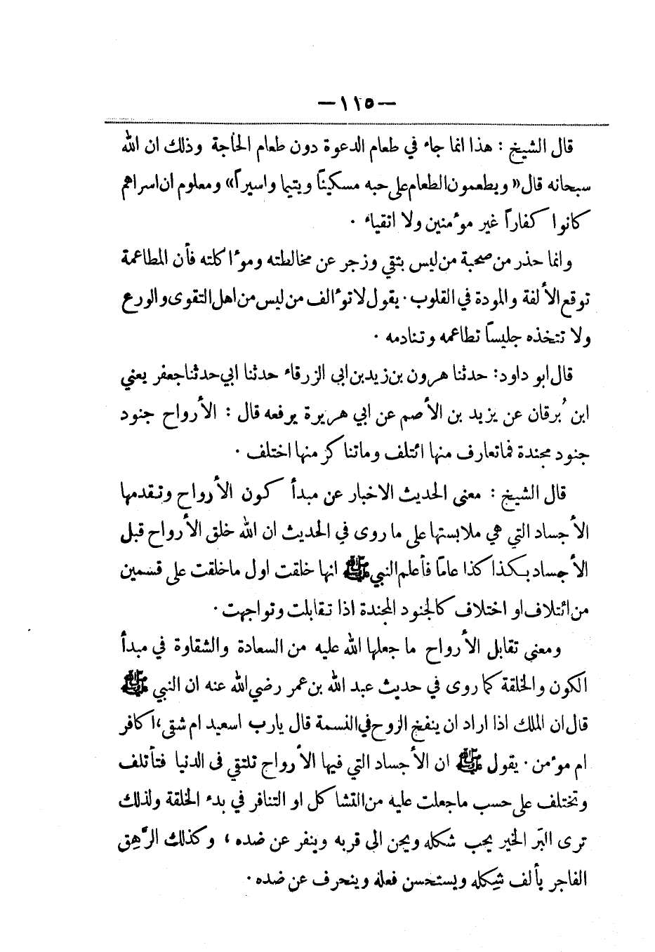 قال أبو داود: حدثنا هارون بن زيد بن أبي الزرقاء حدثنا أبي حدثنا جعفر، يَعني ابن برقان عن يزيد بن الأصم، عَن أبي هريرة يرفعه قال: الأرواح جنود مجندة فما تعارف منها ائتلف وما تناكر منها اختلف.