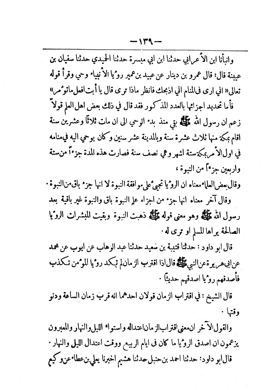 قال أبو داود: حدثنا قتيبة بن سعيد حدثنا عبد الوهاب عن أيوب عن محمد، عَن أبي هريرة عن النبي صلى الله عليه وسلم قال: إذا اقترب الزمان لم تكد رؤيا المؤمن تكذب فأصدقهم رؤيا أصدقهم حديثاً.