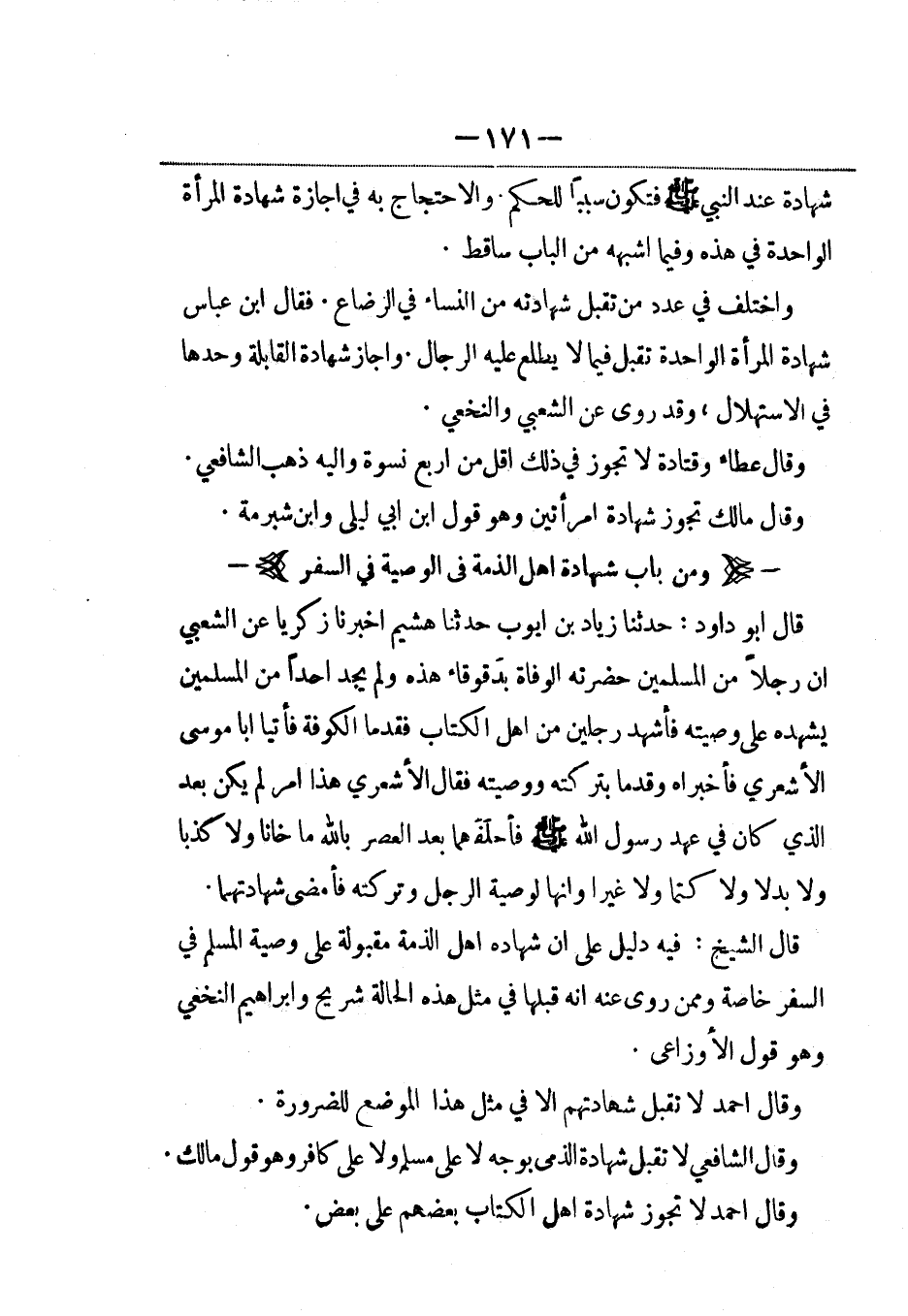 قال الشيخ: فيه دليل على أن شهادة أهل الذمة مقبولة على وصية المسلم في السفر خاصة وممن روي عنه أنه قبلها في مثل هذه الحالة شريح وإبراهيم النخعي وهو قول الأوزاعي.