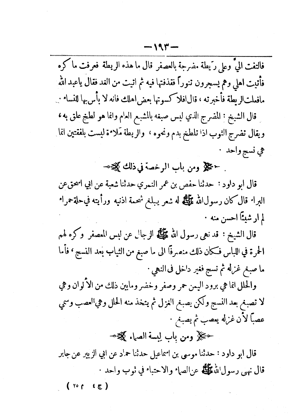 قال أبو داود: حدثنا موسى بن إسماعيل حدثنا حماد، عَن أبي الزبير عن جابر قال نهى رسول الله صلى الله عليه وسلم عن الصماء والاحتباء في ثوب واحد.