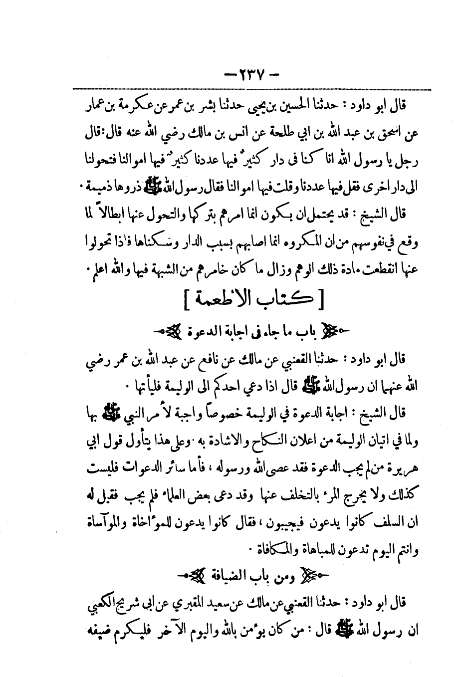 قال أبو داود: حدثنا القعنبي عن مالك عن نافع عن عبد الله بن عمر رضي الله عنهما أن رسول الله صلى الله عليه وسلم قال: إذا دعي أحدكم إلى الوليمة فليأتها.
