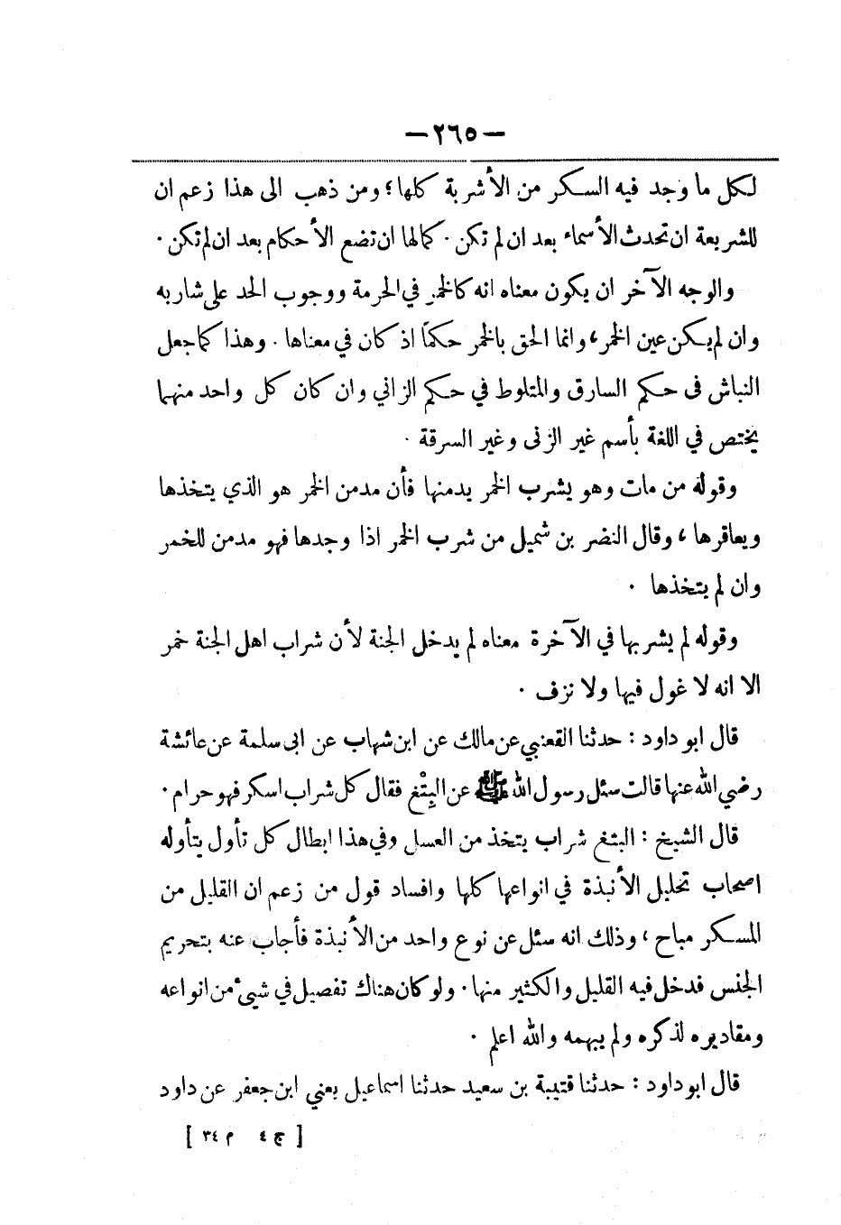 قال أبو داود: حدثنا القعنبي عن مالك عن ابن شهاب، عَن أبي سلمة عن عائشة رضي الله عنها قالت سئل رسول الله صلى الله عليه وسلم عن البِتْع فقال كل شراب أسكر فهو حرام.