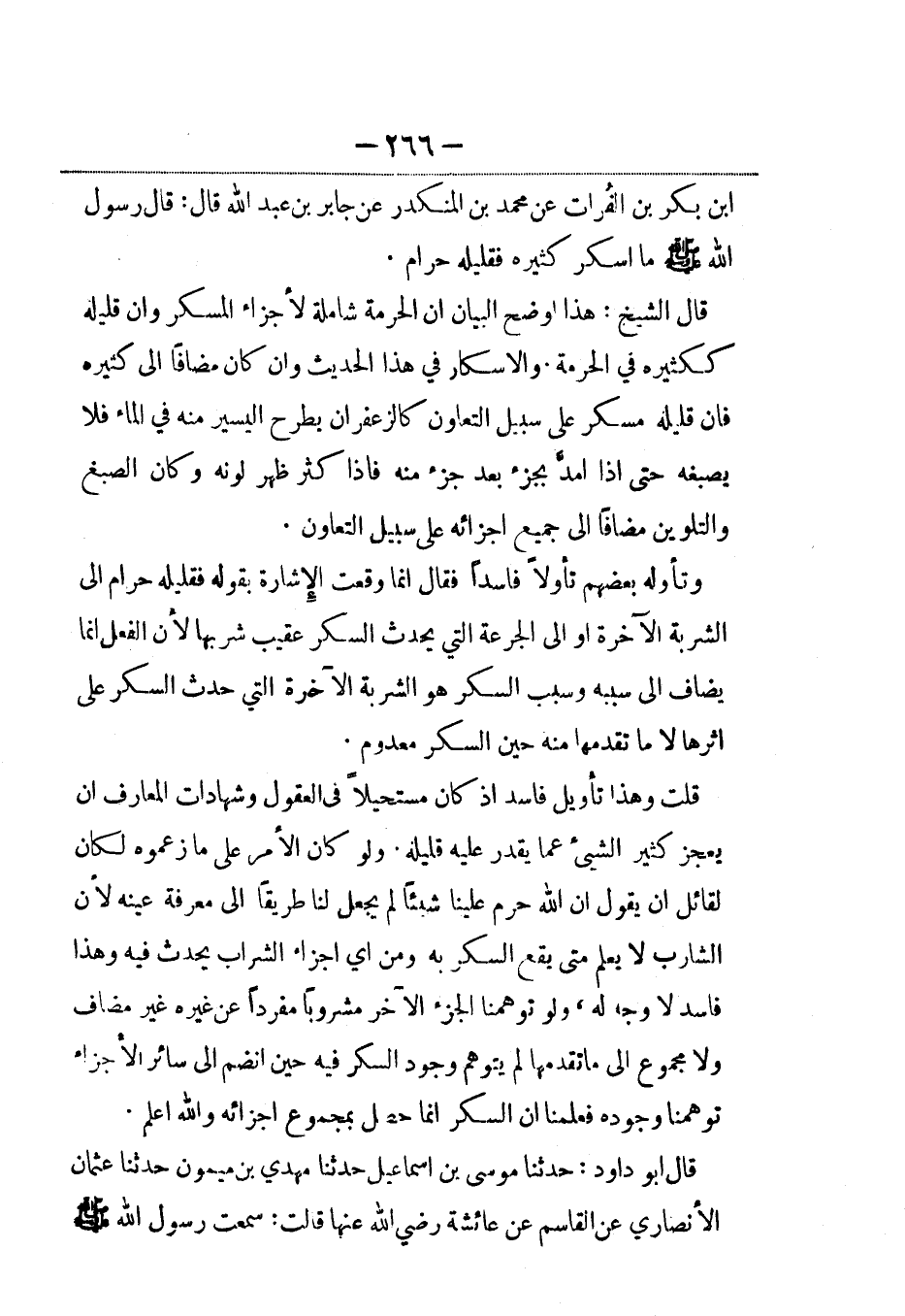 بن بكر بن الفُرات عن محمد بن المنكدر عن جابر بن عبد الله قال: قال رسول الله صلى الله عليه وسلم ما أسكر كثيره فقليله حرام.