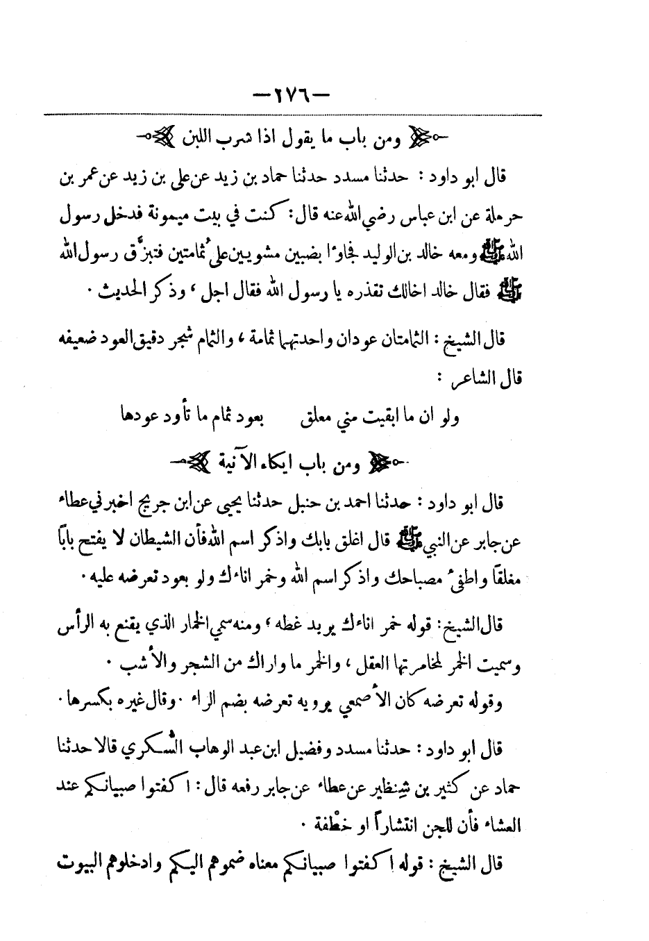 (1) كذا في الأصل، والحديث المذكور في الباب يتعلق بأكل الضب وليس بشرب اللبن.