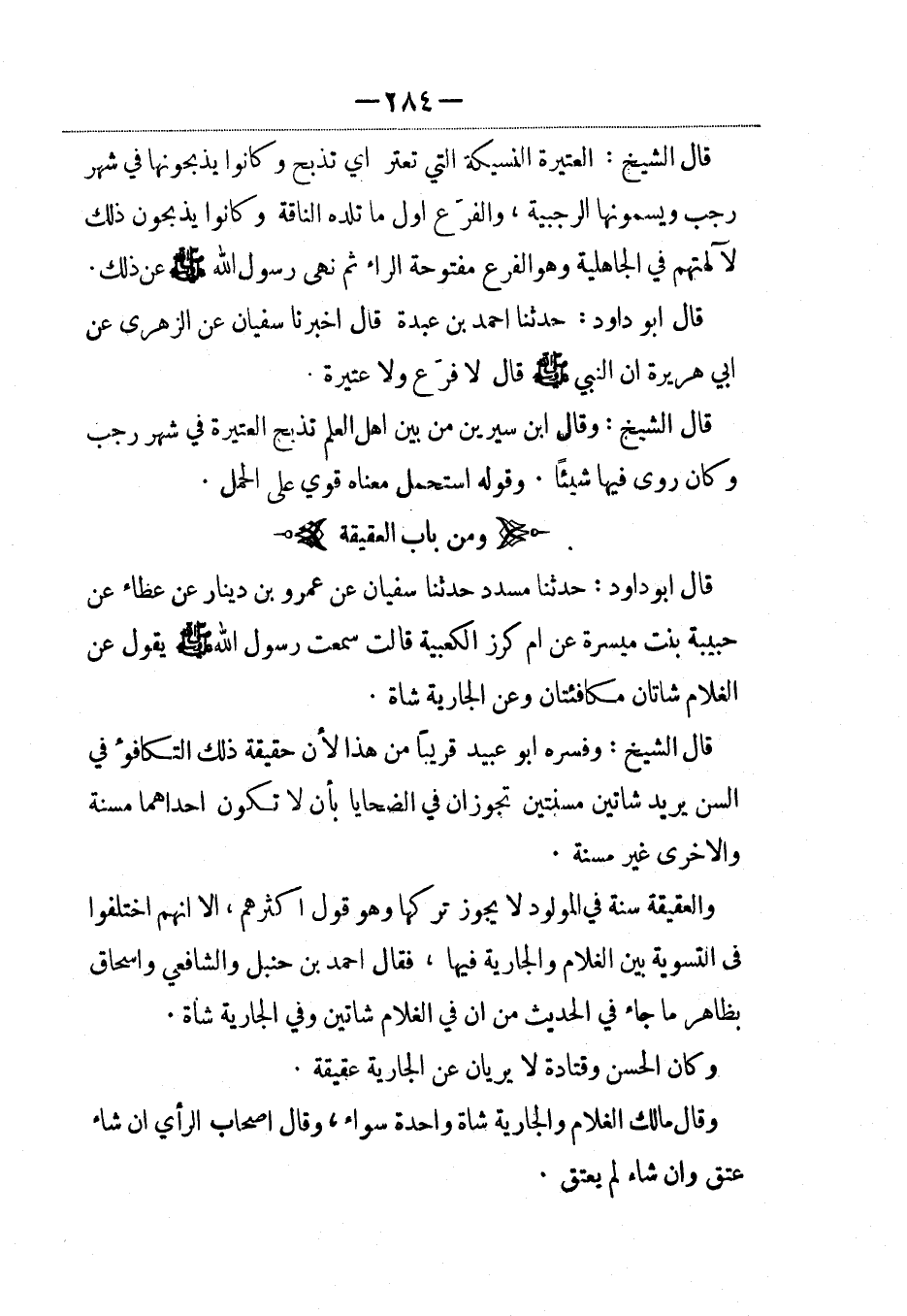 قال أبو داود: حدثنا أحمد بن عبدة قال أخبرنا سفيان عن الزهري عن أبى هريرة أن النبي صلى الله عليه وسلم قال: لا فرع ولا عتيرة.