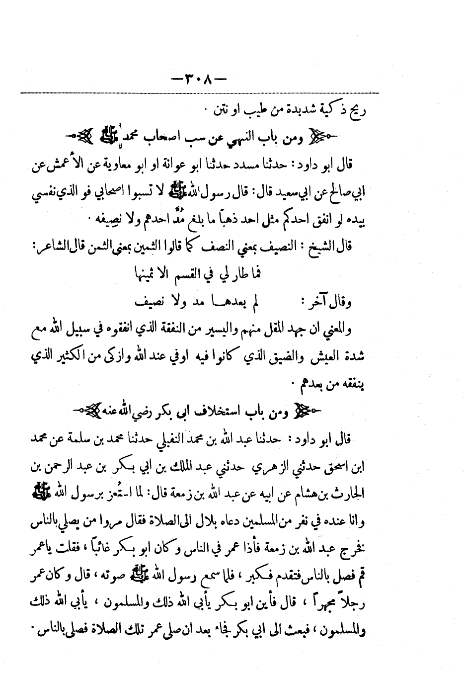 ومن باب النهي عن سب أصحاب محمد صلى الله عليه وسلم