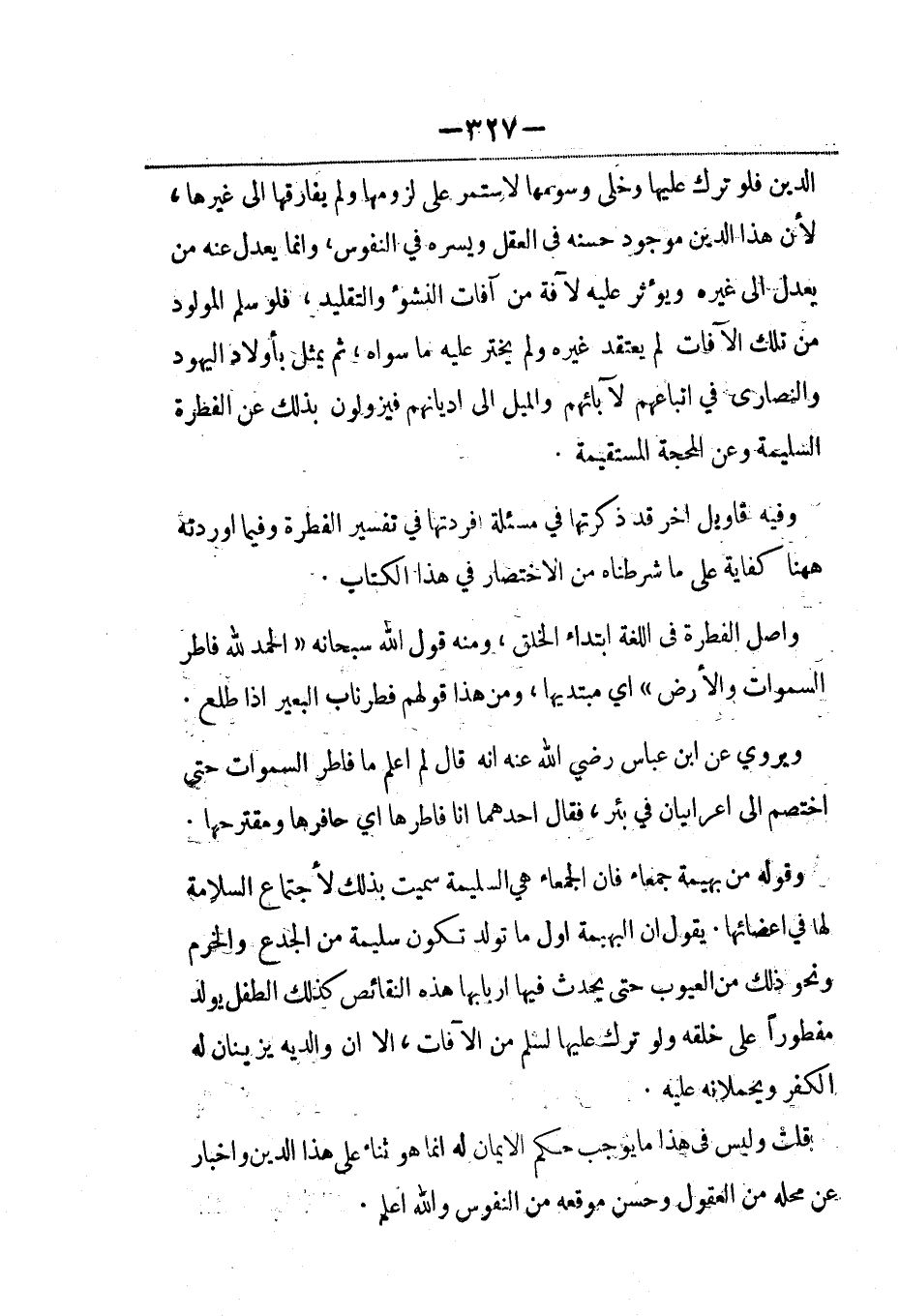 وفيه أقاويل أخر قد ذكرتها في مسألة أفردتها في تفسير الفطرة وفيما أوردته ههنا كفاية على ما شرطناه من الاختصار في هذا الكتاب.