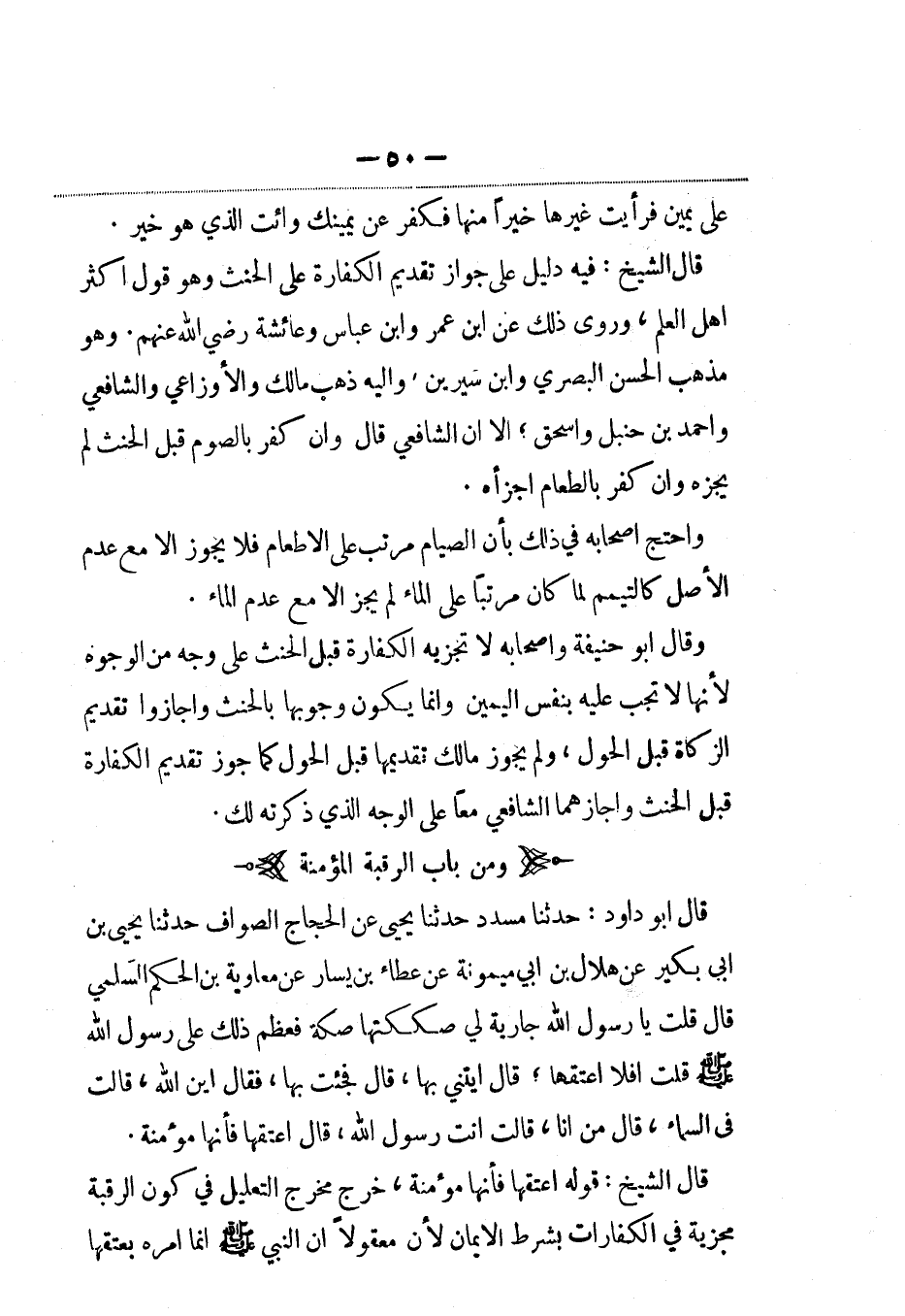 قال الشيخ: قوله أعتقها فإنها مؤمنة، خرج مخرج التعليل في كون الرقبة مجزية في الكفارات بشرط الإيمان لأن معقولاً أن النبي صلى الله عليه وسلم إنما أمره بعتقها