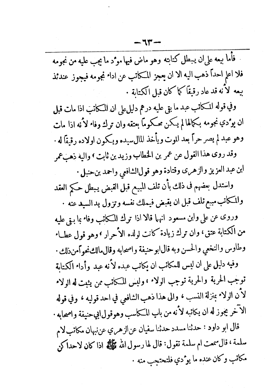قال أبو داود: حدثنا مسدد حدثنا سفيان عن الزهري عن نبهان مكاتب لأم سلمة، قال سمعت أم سلمة تقول: قال لها رسول الله صلى الله عليه وسلم إذا كان لإحداكن مكاتب وكان عنده ما يؤدي فلتحتجب منه.
