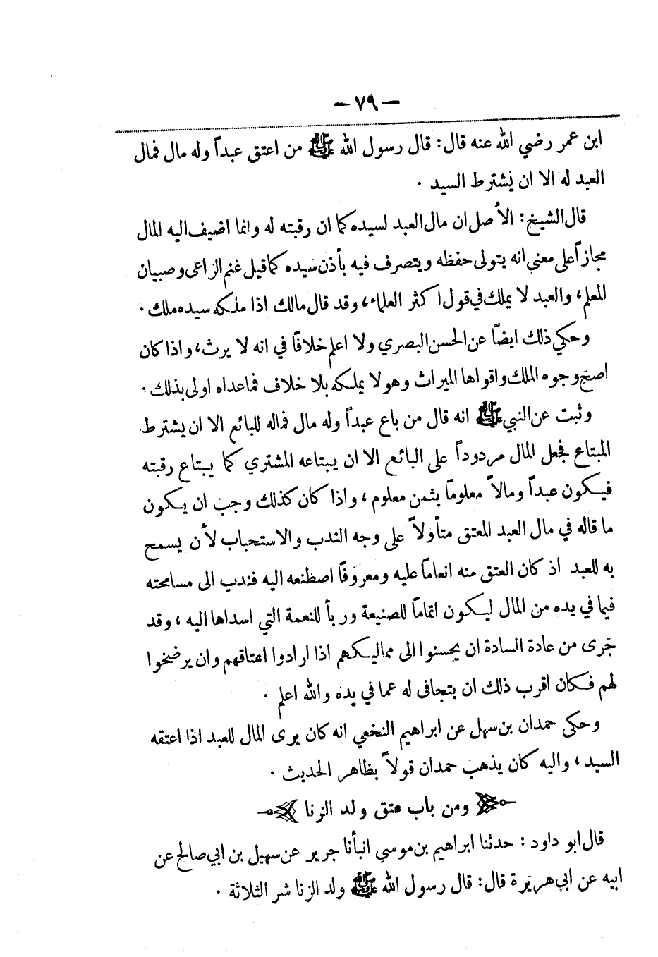 بن عمر رضي الله عنه قال: قال رسول الله صلى الله عليه وسلم: من أعتق عبداً وله مال فمال العبد له إلاّ أن يشترط السيد.