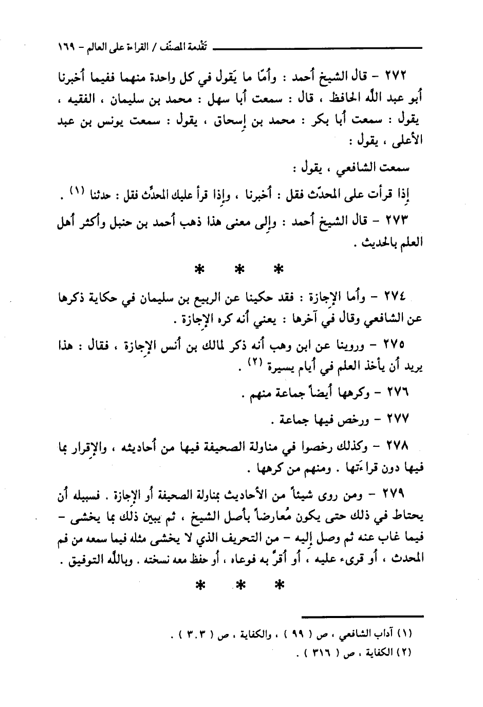 278 - وَكَذَلِكَ رَخَّصُوا فِي مُنَاوَلَةِ الصَّحِيفَةِ فِيهَا مِنْ أَحَادِيثِهِ وَالْإِقْرَارِ بِمَا فِيهَا دُونَ قِرَاءَتِهَا وَمِنْهُمْ مَنْ كَرِهَهَا.