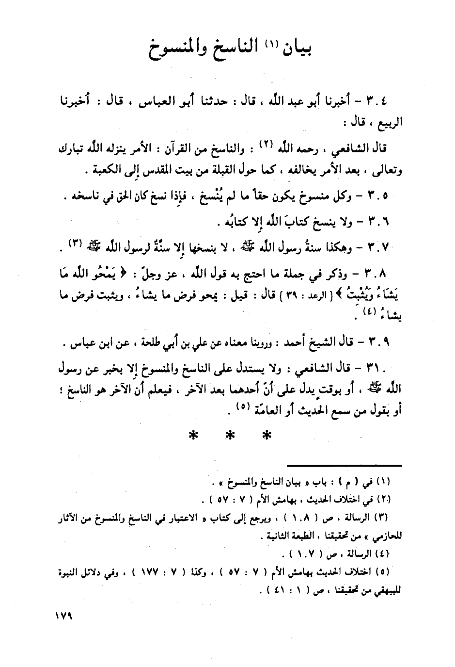 304 - أَخْبَرَنَا أَبُو عَبْدِ اللَّهِ قَالَ: حَدَّثَنَا أَبُو الْعَبَّاسِ قَالَ: أَخْبَرَنَا الرَّبِيعُ قَالَ: قَالَ الشَّافِعِيُّ رَحِمَهُ اللَّهُ: وَالنَّاسِخُ مِنَ الْقُرْآنِ الْأَمْرُ يُنْزِلُهُ اللَّهُ تَبَارَكَ وَتَعَالَى بَعْدَ الْأَمْرِ يُخَالِفُهُ كَمَا حَوَّلَ الْقِبْلَةَ مِنْ بَيْتِ الْمَقْدِسِ إِلَى الْكَعْبَةِ