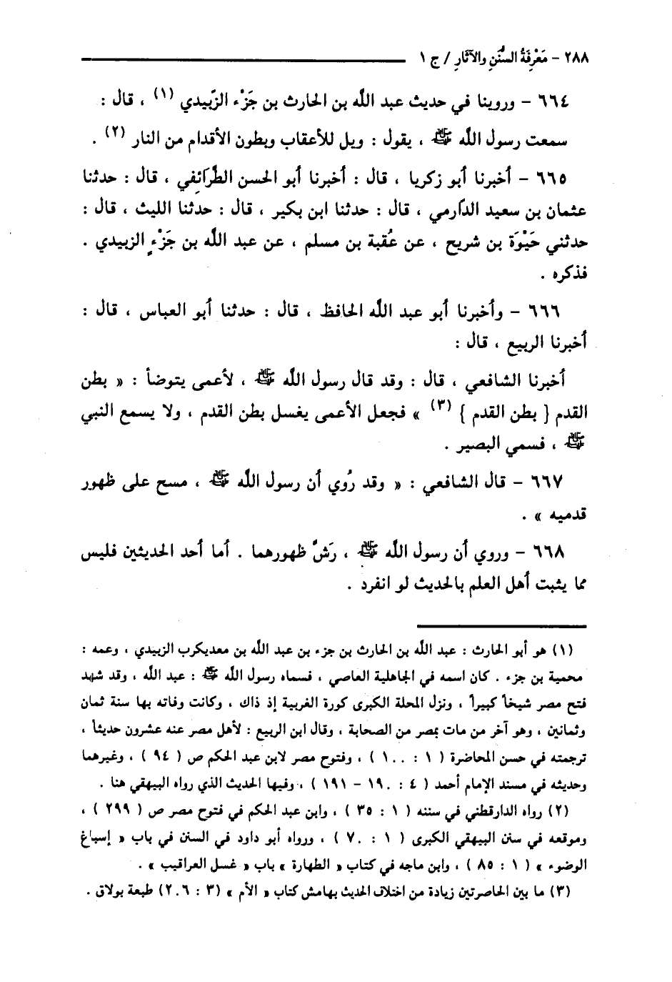 666 - وَأَخْبَرَنَا أَبُو عَبْدِ اللَّهِ الْحَافِظُ قَالَ: حَدَّثَنَا أَبُو الْعَبَّاسِ قَالَ: أَخْبَرَنَا الرَّبِيعُ قَالَ: أَخْبَرَنَا الشَّافِعِيُّ قَالَ: وَقَدْ قَالَ رَسُولُ اللَّهِ صَلَّى اللهُ عَلَيْهِ وَسَلَّمَ، §لِأَعْمَى يَتَوَضَّأُ: «بَطْنَ الْقَدَمِ، بَطْنَ الْقَدَمِ»، فَجَعَلَ الْأَعْمَى يَغْسِلُ بَطْنَ الْقَدَمِ، وَلَا يَسْمَعُ النَّبِيَّ صَلَّى اللهُ عَلَيْهِ وَسَلَّمَ، فَسُمِّي الْبَصِيرَ