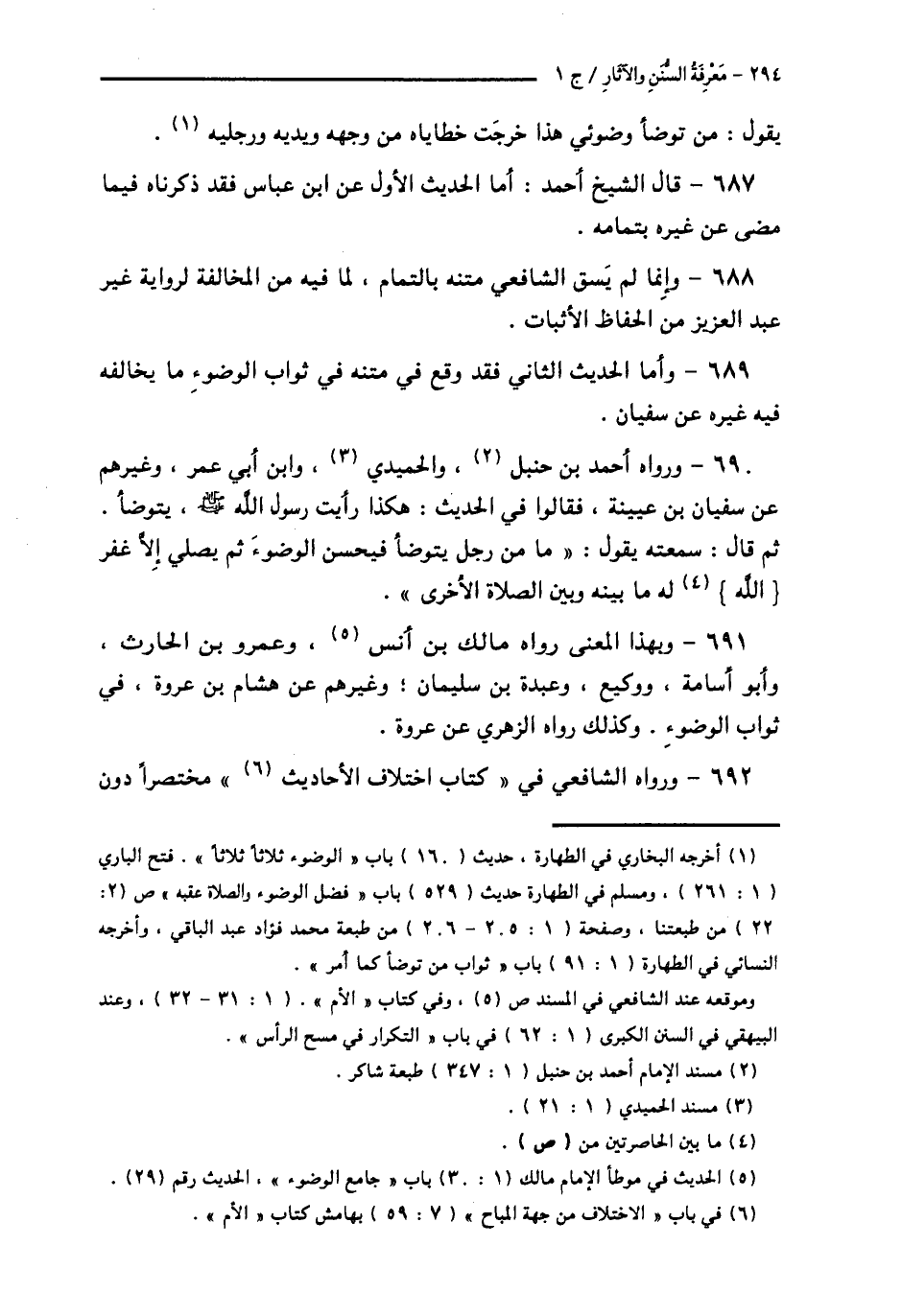 692 - وَرَوَاهُ الشَّافِعِيُّ فِي كِتَابِ اخْتِلَافِ الْأَحَادِيثِ مُخْتَصَرًا دُونَ -[295]- هَذِهِ اللَّفْظَةِ. فَيُحْتَمَلُ أَنْ يَكُونَ ذَلِكَ فِي كِتَابِ الطَّهَارَةِ خَطَأً مِنَ الْكَاتِبِ، وَيُحْتَمَلُ أَنْ يَكُونَ ابْنُ عُيَيْنَةَ ذَكَرَهَا هَكَذَا مَرَّةً. فَقَدْ رَوَى مَعْنَاهُ مِنْ وَجْهٍ آخَرَ فِي حَدِيثِ حُمْرَانَ، عَنْ عُثْمَانَ بْنِ عَفَّانَ قَالَ: قَالَ رَسُولُ اللَّهِ صَلَّى اللهُ عَلَيْهِ وَسَلَّمَ: § «مَنْ تَوَضَّأَ فَأَحْسَنَ الْوُضُوءَ خَرَجَتْ خَطَايَاهُ مِنْ جَسَدِهِ حَتَّى تَخْرُجَ مِنْ تَحْتِ أَظْفَارِهِ».