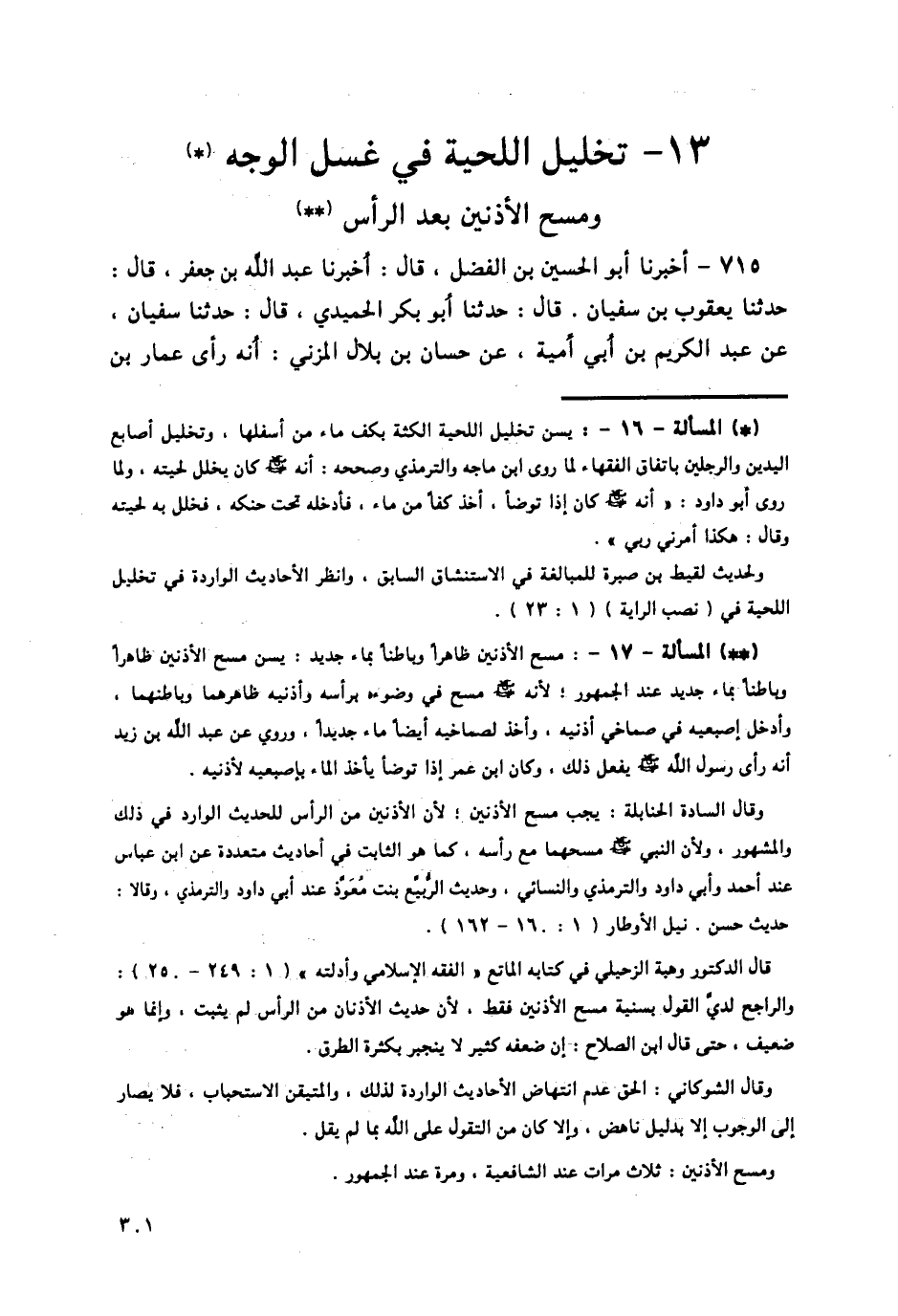 §تَخْلِيلُ اللِّحْيَةِ فِي غَسْلِ الْوَجْهِ وَمَسْحِ الْأُذُنَيْنِ بَعْدَ الرَّأْسِ
