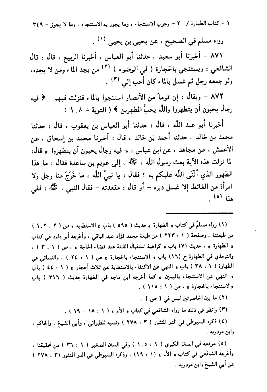 871 - أَخْبَرَنَا أَبُو سَعِيدٍ، حَدَّثَنَا أَبُو الْعَبَّاسِ، أَخْبَرَنَا الرَّبِيعُ قَالَ: قَالَ الشَّافِعَيُّ: § «وَيَسْتَنْجِي بِالْحِجَارَةِ فِي الْوُضُوءِ مَنْ يَجِدِ الْمَاءَ وَمَنْ لَا يَجِدْهُ، وَلَوُ جَمَعَهُ رَجُلٌ ثُمَّ غَسَلَ بِالْمَاءِ كَانَ أَحَبَّ إِلَيَّ»