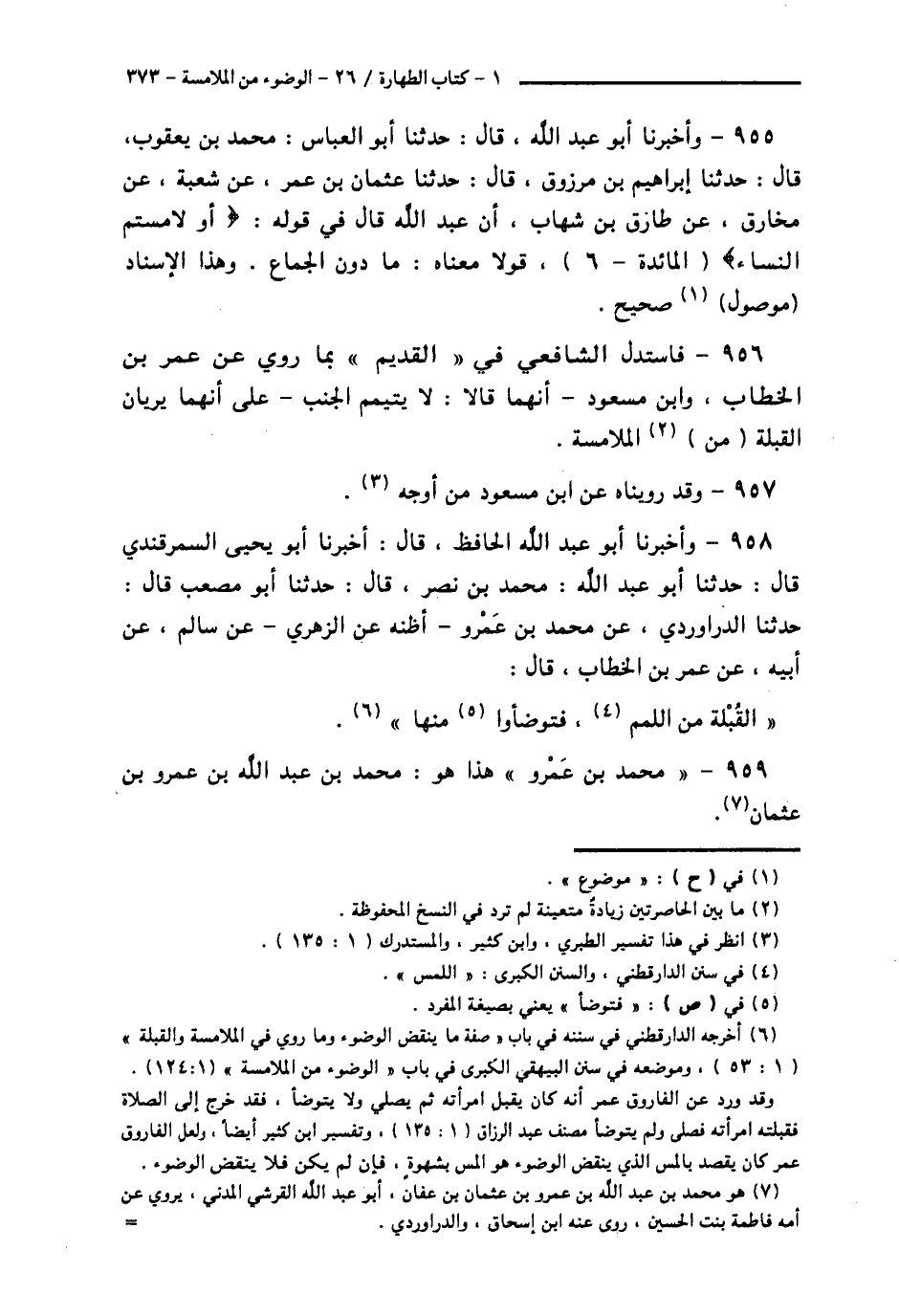 958 - وَأَخْبَرَنَا أَبُو عَبْدِ اللَّهِ الْحَافِظُ قَالَ: أَخْبَرَنَا أَبُو يَحْيَى السَّمَرْقَنْدِيُّ قَالَ: حَدَّثَنَا أَبُو عَبْدِ اللَّهِ مُحَمَّدُ بْنُ نَصْرٍ قَالَ: حَدَّثَنَا أَبُو مُصْعَبٍ قَالَ: حَدَّثَنَا الدَّرَاوَرْدِيُّ، عَنْ مُحَمَّدِ بْنِ عَمْرٍو، أَظُنُّهُ عَنِ الزُّهْرِيِّ، عَنْ سَالِمٍ، عَنْ أَبِيهِ، عَنْ عُمَرَ بْنِ الْخَطَّابِ قَالَ: «§الْقُبْلَةُ مِنَ اللَّمَمِ، فَتَوَضَّئُوا مِنْهَا»،