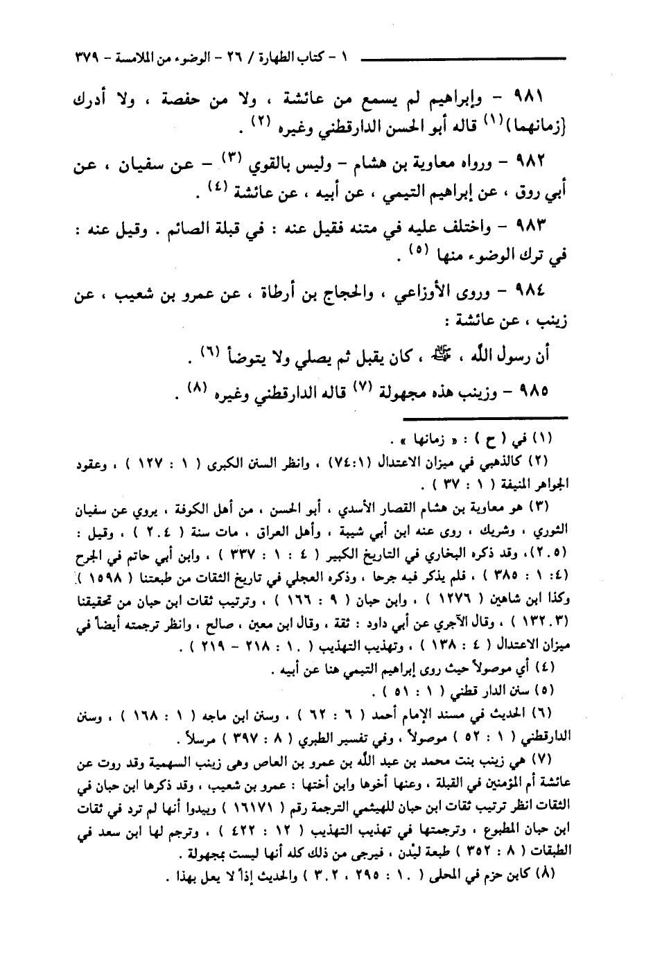 985 - وَزَيْنَبُ هَذِهِ مَجْهُولَةً قَالَهُ الدَّارَقُطْنِيُّ، وَغَيْرُهُ -[380]-.