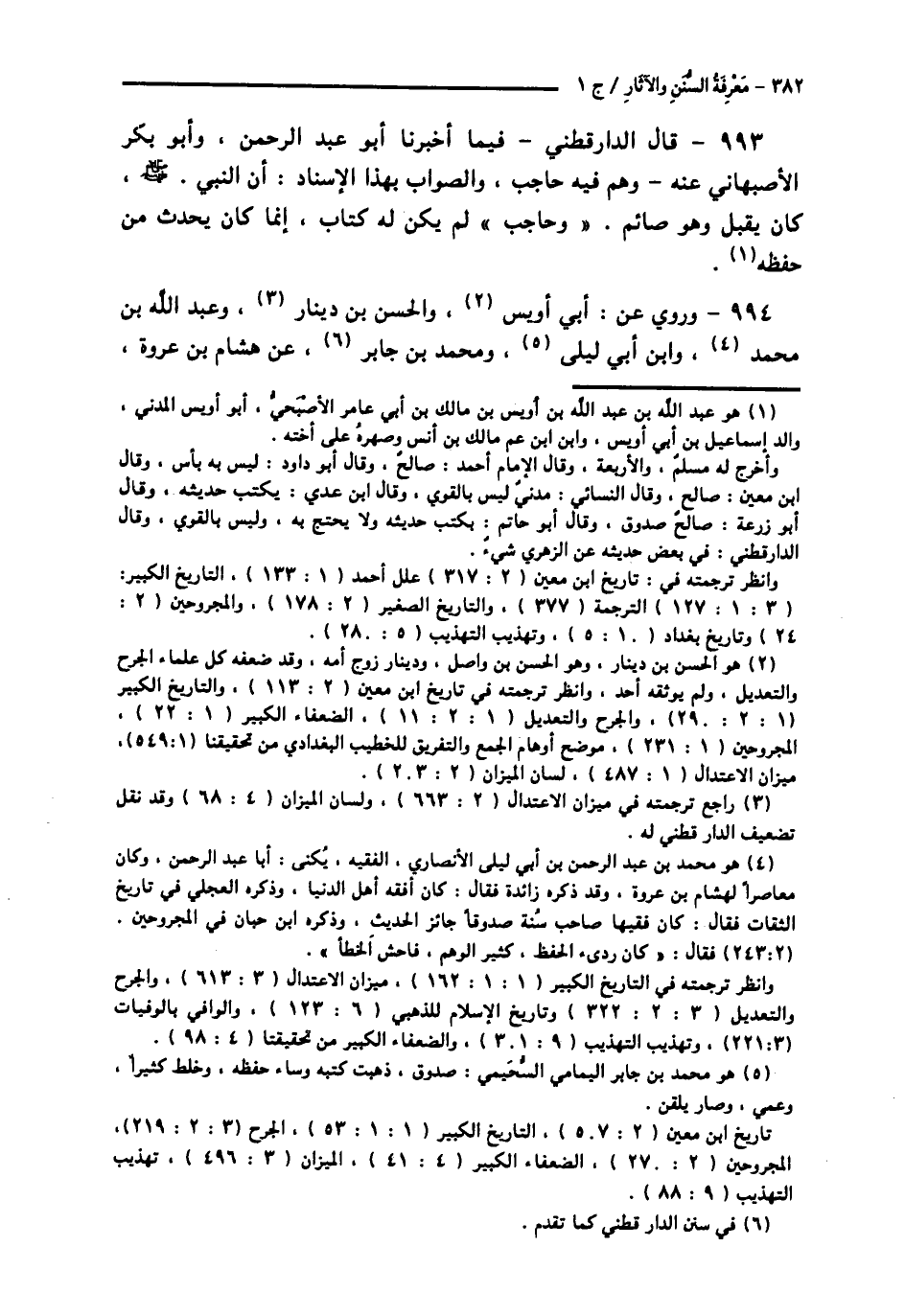 993 - قَالَ الدَّارَقُطْنِيُّ، فِيمَا أَخْبَرَنَا أَبُو عَبْدُ الرَّحْمَنِ، وَأَبُو بَكْرٍ الْأَصْبَهَانِيُّ عَنْهُ: وَهِمَ فِيهِ حَاجِبٌ، وَالصَّوَابُ بِهَذَا الْإِسْنَادِ: «أَنَّ النَّبِيَّ صَلَّى اللهُ عَلَيْهِ وَسَلَّمَ كَانَ §يُقَبِّلُ وَهُوَ صَائِمٌ». وَحَاجِبٌ لَمْ يَكُنْ لَهُ كِتَابٌ إِنَّمَا كَانَ يُحَدِّثُ مِنْ حِفْظِهِ.