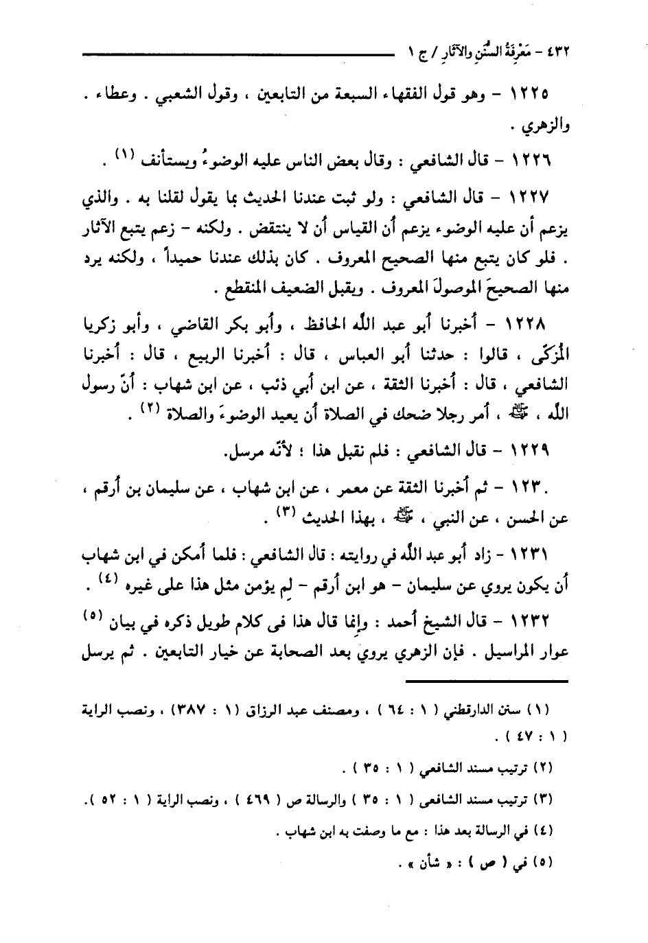 1232 - قَالَ الشَّيْخُ أَحْمَدُ: وَإِنَّمَا قَالَ هَذَا فِي كَلَامٍ طَوِيلٍ ذَكَرَهُ فِي بَيَانِ عَوَارِ الْمَرَاسِيلِ. فَإِنَّ الزُّهْرِيَّ يَرْوِي بَعْدَ الصَّحَابَةِ عَنْ خِيَارِ التَّابِعِينَ. ثُمَّ يُرْسِلُ -[433]- عَنْ مِثْلِ سُلَيْمَانَ بْنِ أَرْقَمَ، وَهُوَ فِيمَا بَيَّنَ أَهْلُ الْعِلْمِ بِالْحَدِيثِ ضَعِيفٌ.