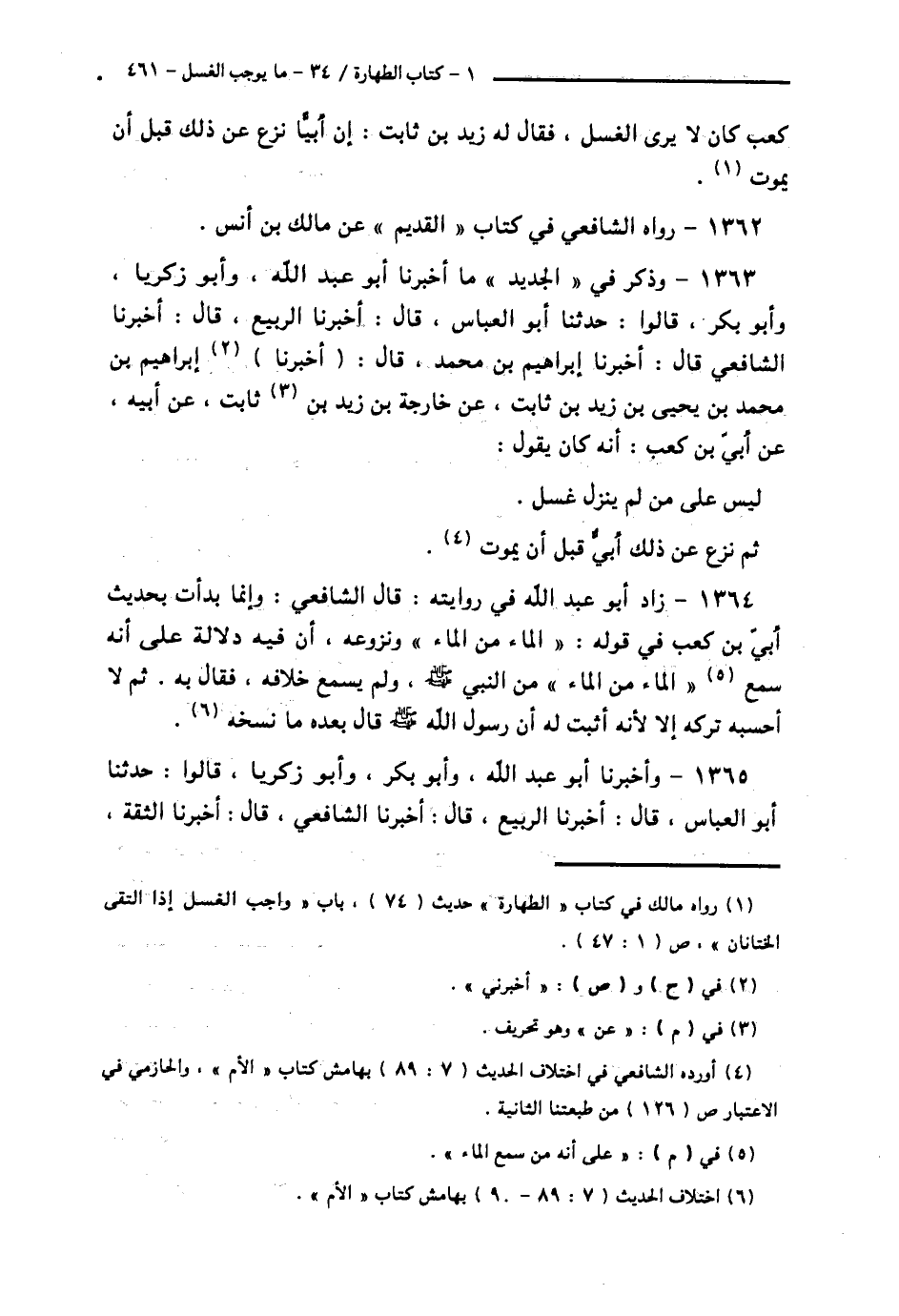 1364 - زَادَ أَبُو عَبْدِ اللَّهِ فِي رِوَايَتِهِ: قَالَ الشَّافِعِيُّ: وَإِنَّمَا بَدَأْتُ بِحَدِيثِ أُبَيِّ بْنِ كَعْبٍ فِي قَوْلِهِ: «الْمَاءُ مِنَ الْمَاءِ» وَنُزُوعُهُ، إِنَّ فِيهِ دَلَالَةٌ عَلَى أَنَّهُ سَمِعَ: «الْمَاءُ مِنَ الْمَاءِ» مِنَ النَّبِيِّ صَلَّى اللهُ عَلَيْهِ وَسَلَّمَ، وَلَمْ يَسْمَعْ خِلَافَهُ، فَقَالَ بِهِ. ثُمَّ لَا أَحْسَبُهُ تَرَكَهُ إِلَّا لِأَنَّهُ أُثْبِتَ لَهُ أَنَّ رَسُولَ اللَّهِ صَلَّى اللهُ عَلَيْهِ وَسَلَّمَ قَالَ بَعْدَهُ مَا نَسَخَهُ