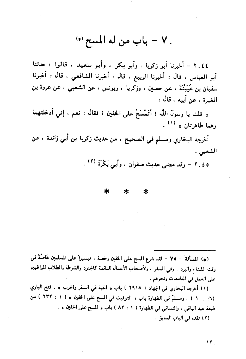 2044 - أَخْبَرَنَا أَبُو زَكَرِيَّا، وَأَبُو بَكْرٍ , وَأَبُو سَعِيدٍ , قَالُوا: حَدَّثَنَا أَبُو الْعَبَّاسِ قَالَ: أَخْبَرَنَا الرَّبِيعُ قَالَ: أَخْبَرَنَا الشَّافِعِيُّ قَالَ: أَخْبَرَنَا سُفْيَانُ بْنُ عُيَيْنَةَ , عَنْ حُصَيْنٍ، وَزَكَرِيَّا، وَيُونُسَ , عَنِ الشَّعْبِيِّ , عَنْ عُرْوَةَ بْنِ الْمُغِيرَةِ، عَنْ أَبِيهِ , قَالَ: قُلْتُ: يَا رَسُولَ اللَّهِ، §أَتَمْسَحُ عَلَى الْخُفَّيْنِ؟ فَقَالَ: «نَعَمْ إِنِّي أَدْخَلْتُهُمَا، وَهُمَا طَاهِرَتَانِ» أَخْرَجَهُ الْبُخَارِيُّ، وَمُسْلِمٌ فِي الصَّحِيحِ , مِنْ حَدِيثِ زَكَرِيَّا بْنِ أَبِي زَائِدَةَ، عَنِ الشَّعْبِيِّ،