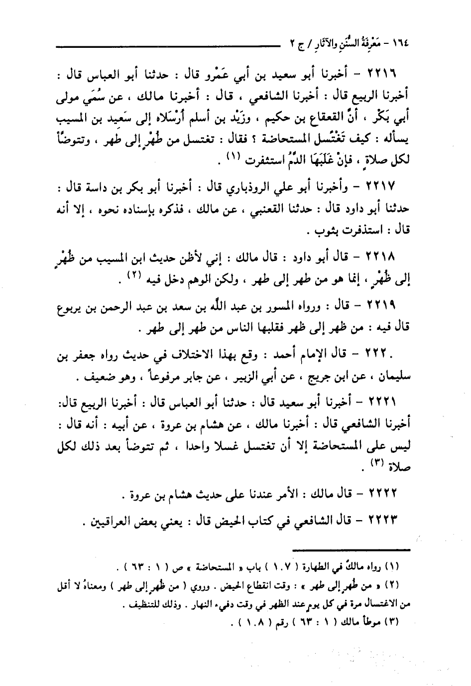 2216 - أَخْبَرَنَا أَبُو سَعِيدِ بْنُ أَبِي عَمْرٍو قَالَ: حَدَّثَنَا أَبُو الْعَبَّاسِ قَالَ: أَخْبَرَنَا الرَّبِيعُ قَالَ: أَخْبَرَنَا الشَّافِعِيُّ قَالَ: أَخْبَرَنَا مَالِكٌ، عَنْ سُمَيٍّ، مَوْلَى أَبِي بَكْرٍ، أَنَّ الْقَعْقَاعَ بْنَ حَكِيمٍ، وَزَيْدَ بْنَ أَسْلَمَ، أَرْسَلَاهُ إِلَى سَعِيدِ بْنِ الْمُسَيِّبِ يَسْأَلُهُ: §كَيْفَ تَغْتَسِلُ الْمُسْتَحَاضَةُ؟ فَقَالَ: " تَغْتَسِلُ مِنْ طُهْرٍ إِلَى طُهْرٍ، وَتَتَوَضَّأُ لِكُلِّ صَلَاةٍ , فَإِنْ غَلَبَهَا الدَّمُ اسْتَثْفَرَتْ