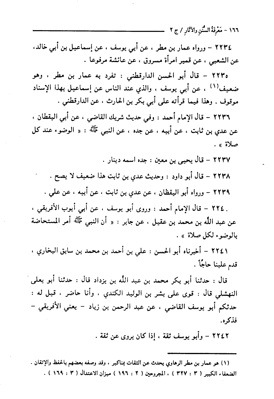 2241 - أَخْبَرَنَاهُ أَبُو الْحَسَنِ: عَلِيُّ بْنُ أَحْمَدَ بْنِ مُحَمَّدِ بْنِ سَابِقٍ الْبُخَارِيُّ، قَدِمَ عَلَيْنَا حَاجًّا قَالَ: حَدَّثَنَا أَبُو بَكْرٍ مُحَمَّدُ بْنُ عَبْدِ اللَّهِ بْنِ يَزْدَادَ قَالَ: حَدَّثَنَا أَبُو يَعْلَى النَّهْشَلِيُّ قَالَ: قُرِئَ عَلَى بِشْرِ بْنِ الْوَلِيدِ الْكِنْدِيِّ، وَأَنَا حَاضِرٌ، قِيلَ لَهُ: حَدَّثَكُمْ أَبُو يُوسُفَ الْقَاضِي، عَنْ عَبْدِ الرَّحْمَنِ بْنِ زِيَادٍ يَعْنِي الْأَفْرِيقِيَّ فَذَكَرَهُ.