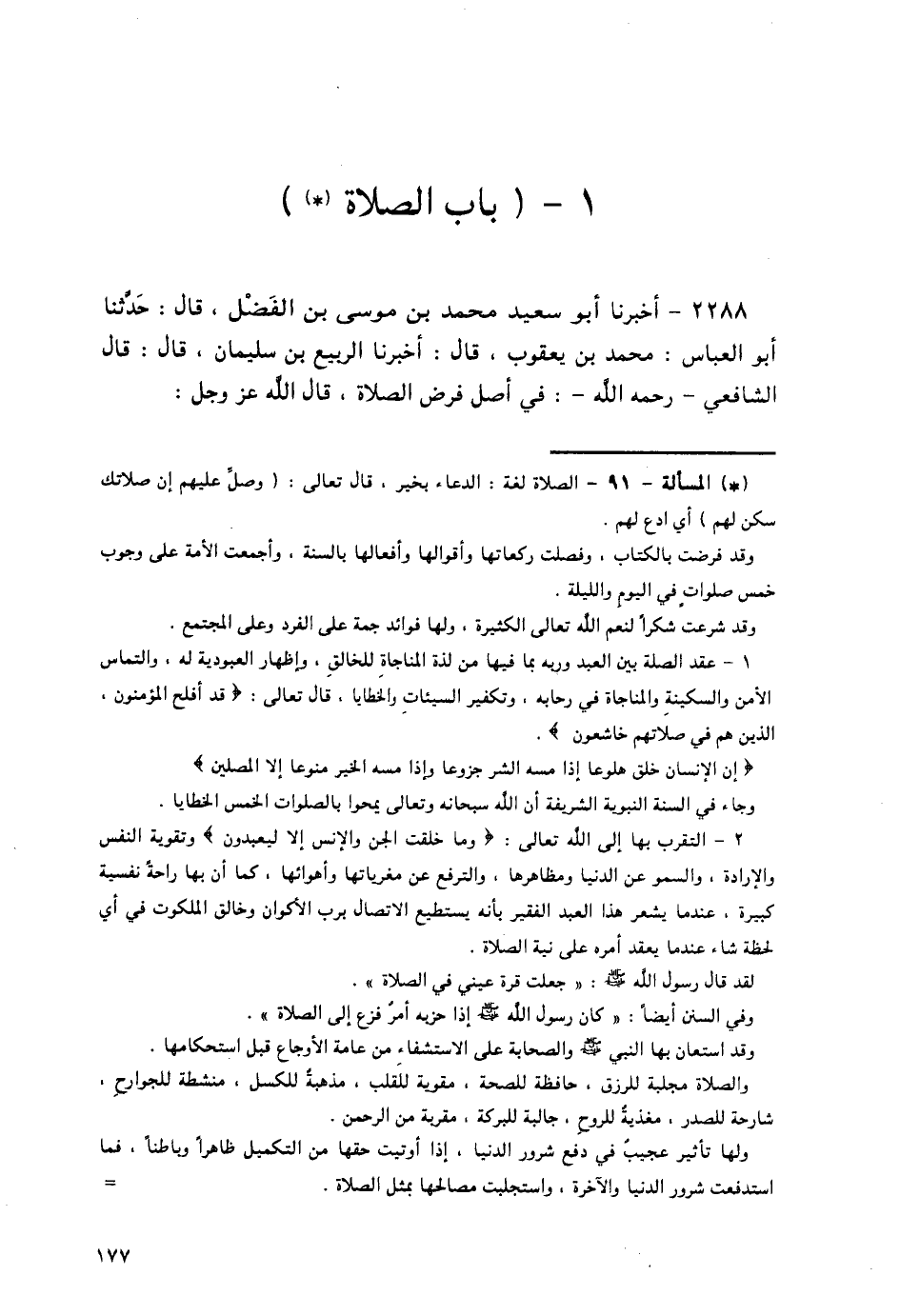 2288 - أَخْبَرَنَا أَبُو سَعِيدٍ مُحَمَّدُ بْنُ مُوسَى بْنِ الْفَضْلِ قَالَ: حَدَّثَنَا أَبُو الْعَبَّاسِ مُحَمَّدُ بْنُ يَعْقُوبَ قَالَ: أَخْبَرَنَا الرَّبِيعُ بْنُ سُلَيْمَانَ قَالَ: قَالَ الشَّافِعِيُّ، رَحِمَهُ اللَّهُ فِي أَصْلِ فَرْضِ الصَّلَاةِ، §قَالَ اللَّهُ عَزَّ وَجَلَّ -[179]-: {إِنَّ الصَّلَاةَ كَانَتْ عَلَى الْمُؤْمِنِينَ كِتَابًا مَوْقُوتًا} [النساء: 103]،